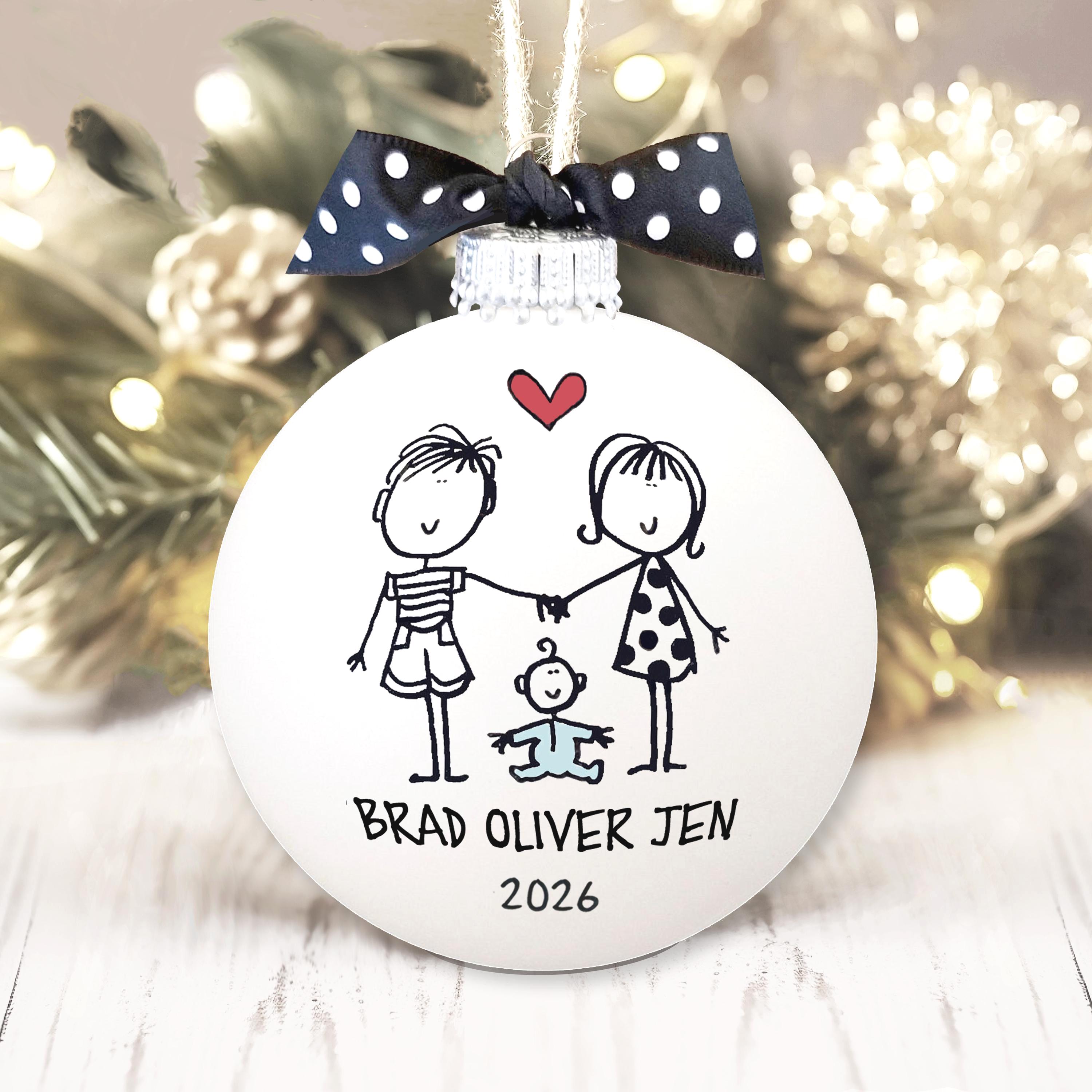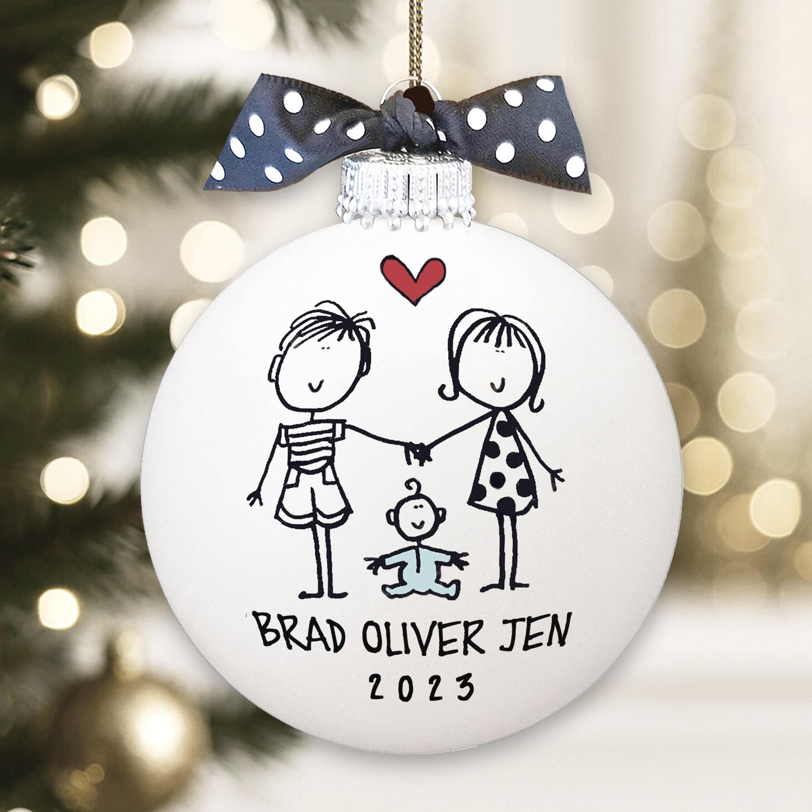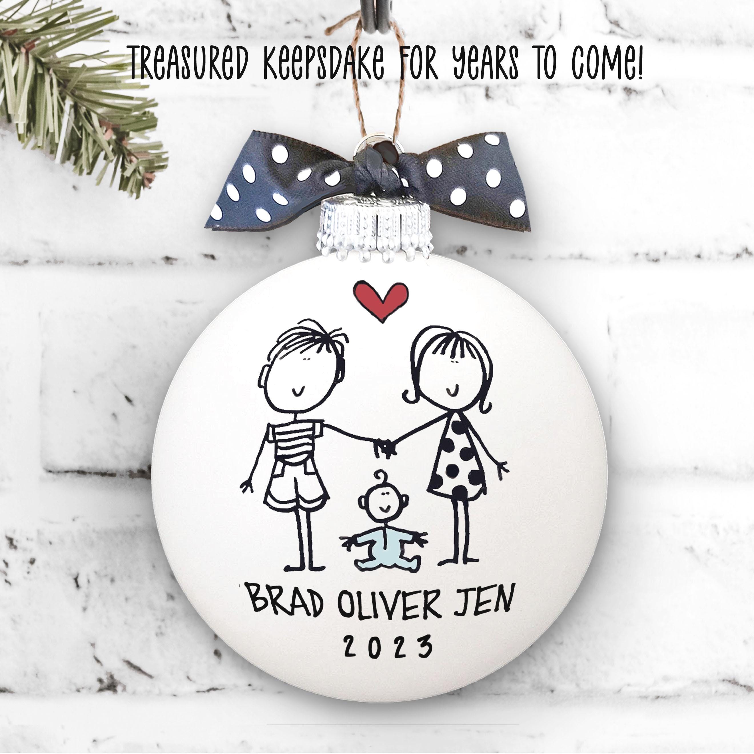 Looking for a unique personalized handmade gift to celebrate the family? These delightful personalized ornaments are the stand-out gift you're searching for! Individually hand-drawn and painted, each keepsake ornament is customized with names and date, and makes a delightfully unique and heart felt gift for those you love! This personal, thoughtful, one-of-a-kind gift perfectly celebrates the joy of the holiday season!
