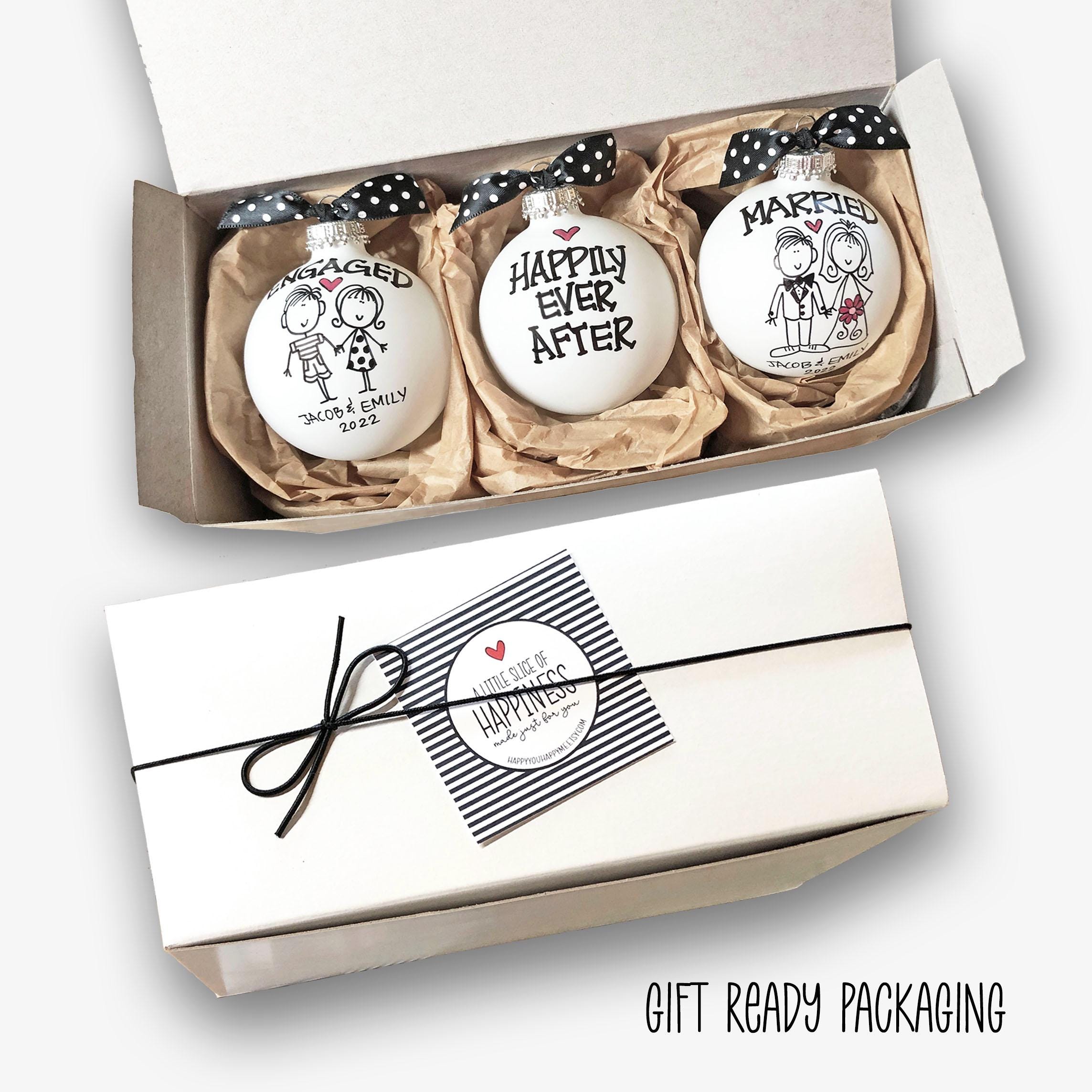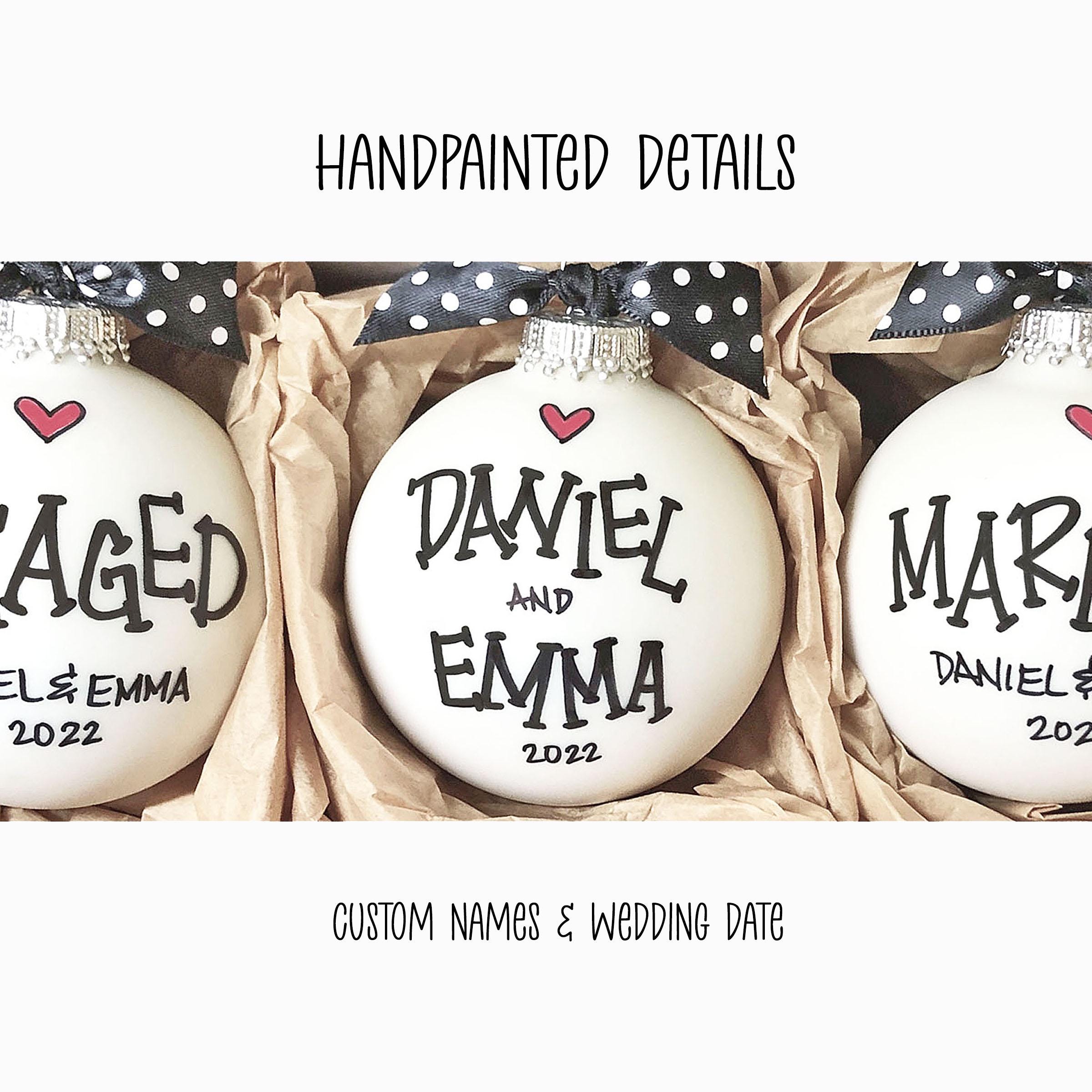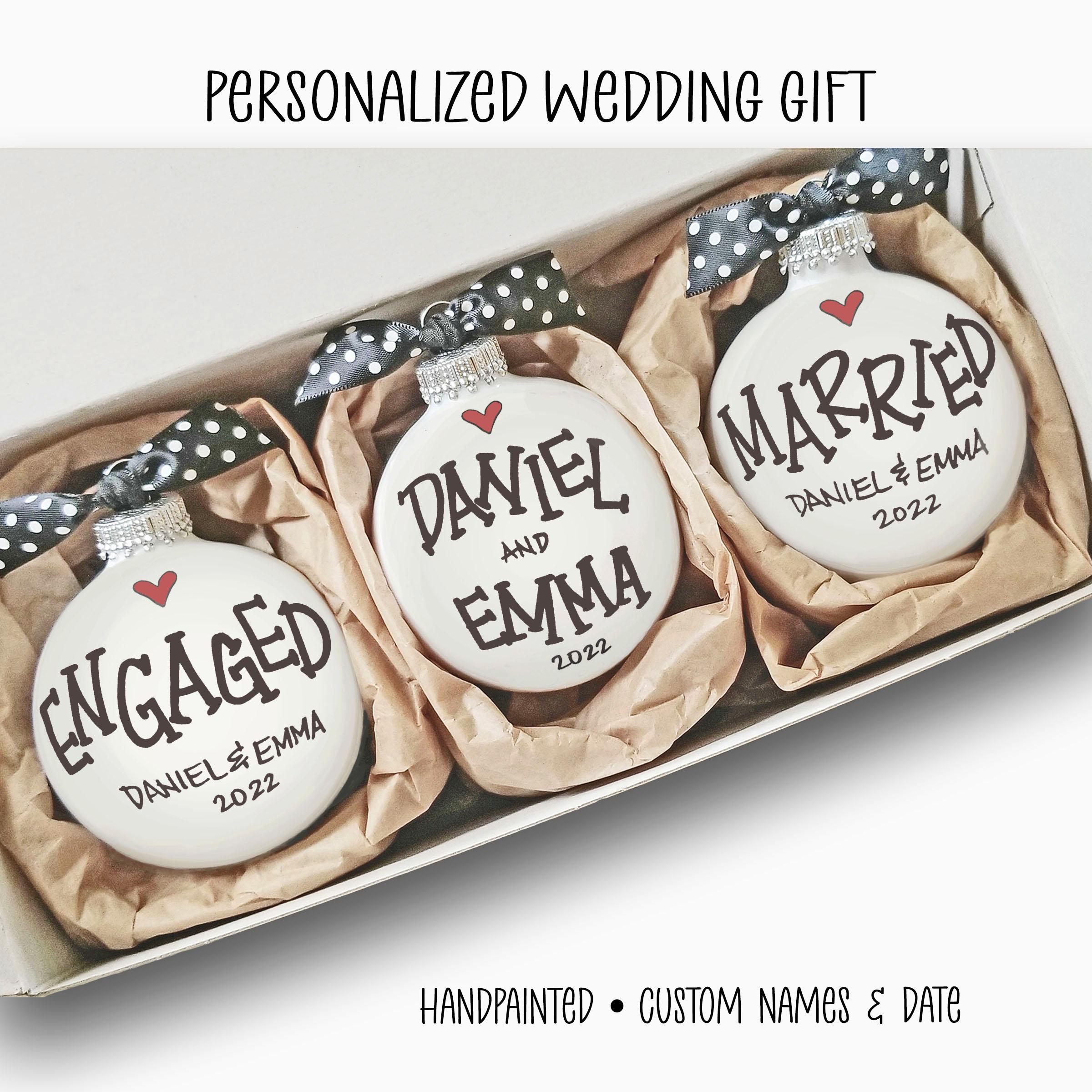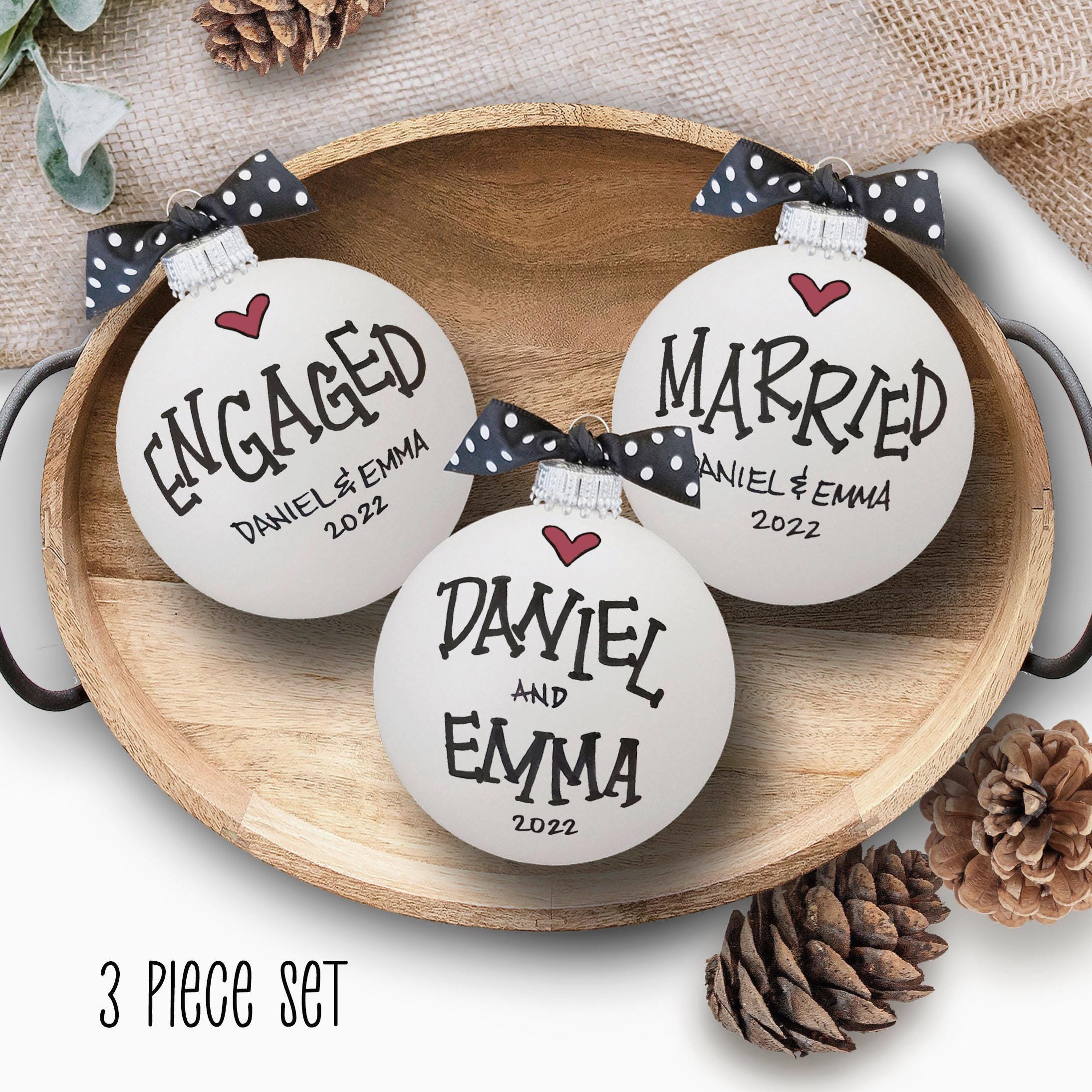 PERSONALIZED ENGAGED & MARRIED ORNAMENT SET - UNIQUE GIFT FOR COUPLE