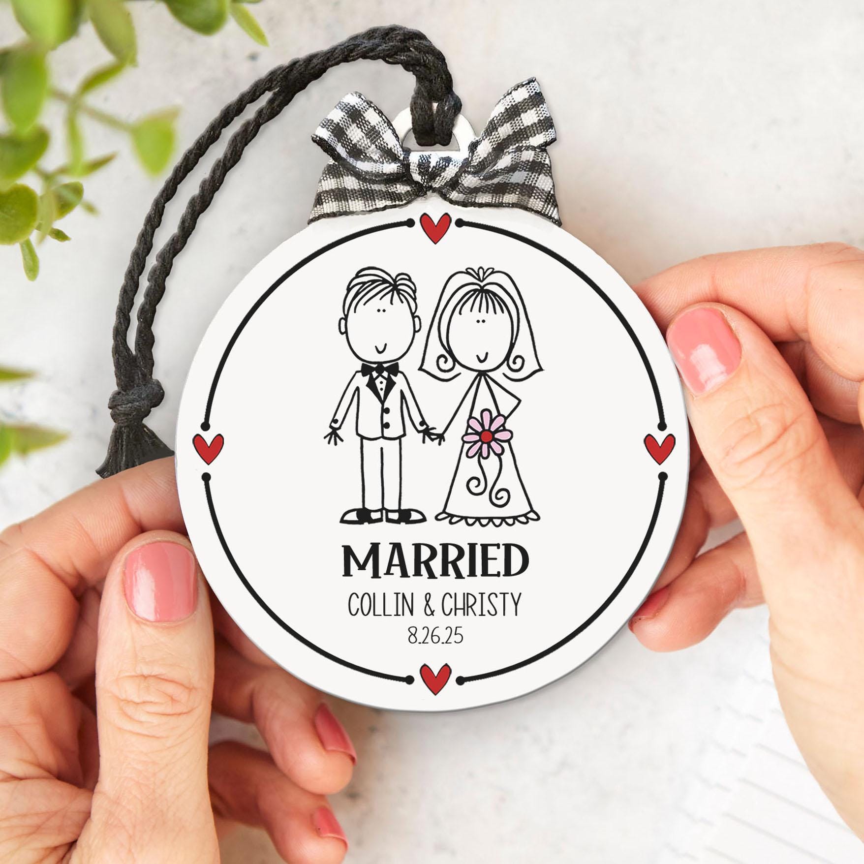 Looking for the Perfect unique newlywed gift? This delightful Married ornament will be the stand-out gift for Weddings, Engagement Parties, Bridal Shower and 1st Christmas Together. A meaningful keepsake that captures the excitement of the happy couple's special milestone and becomes a piece they'll treasure year after year. HANDMADE.