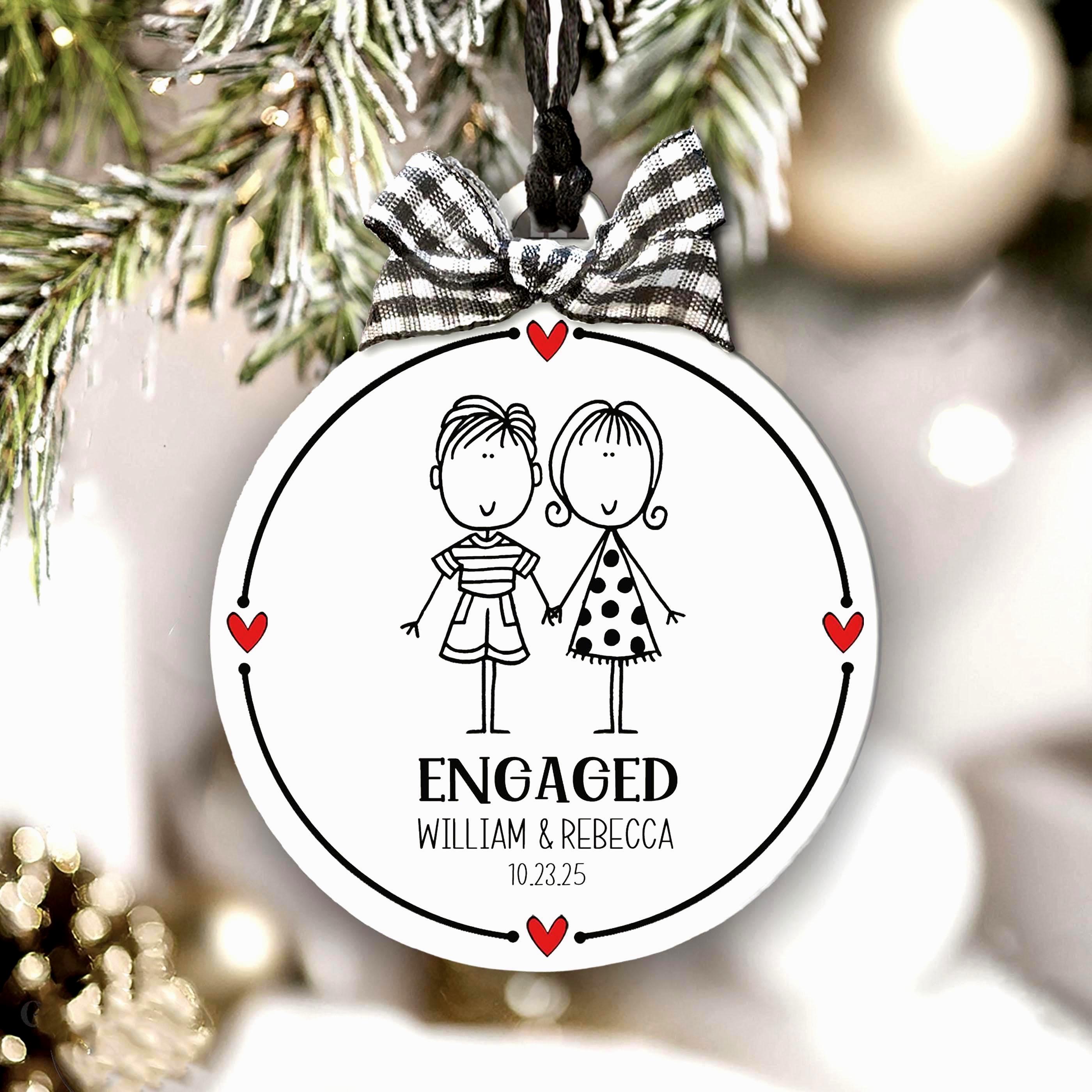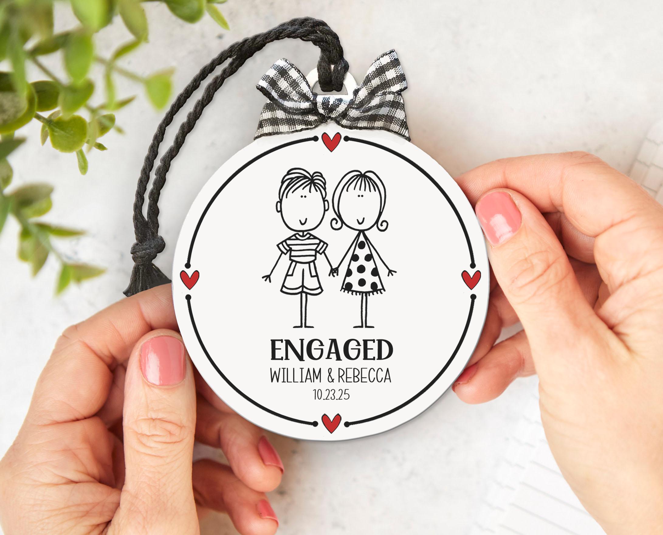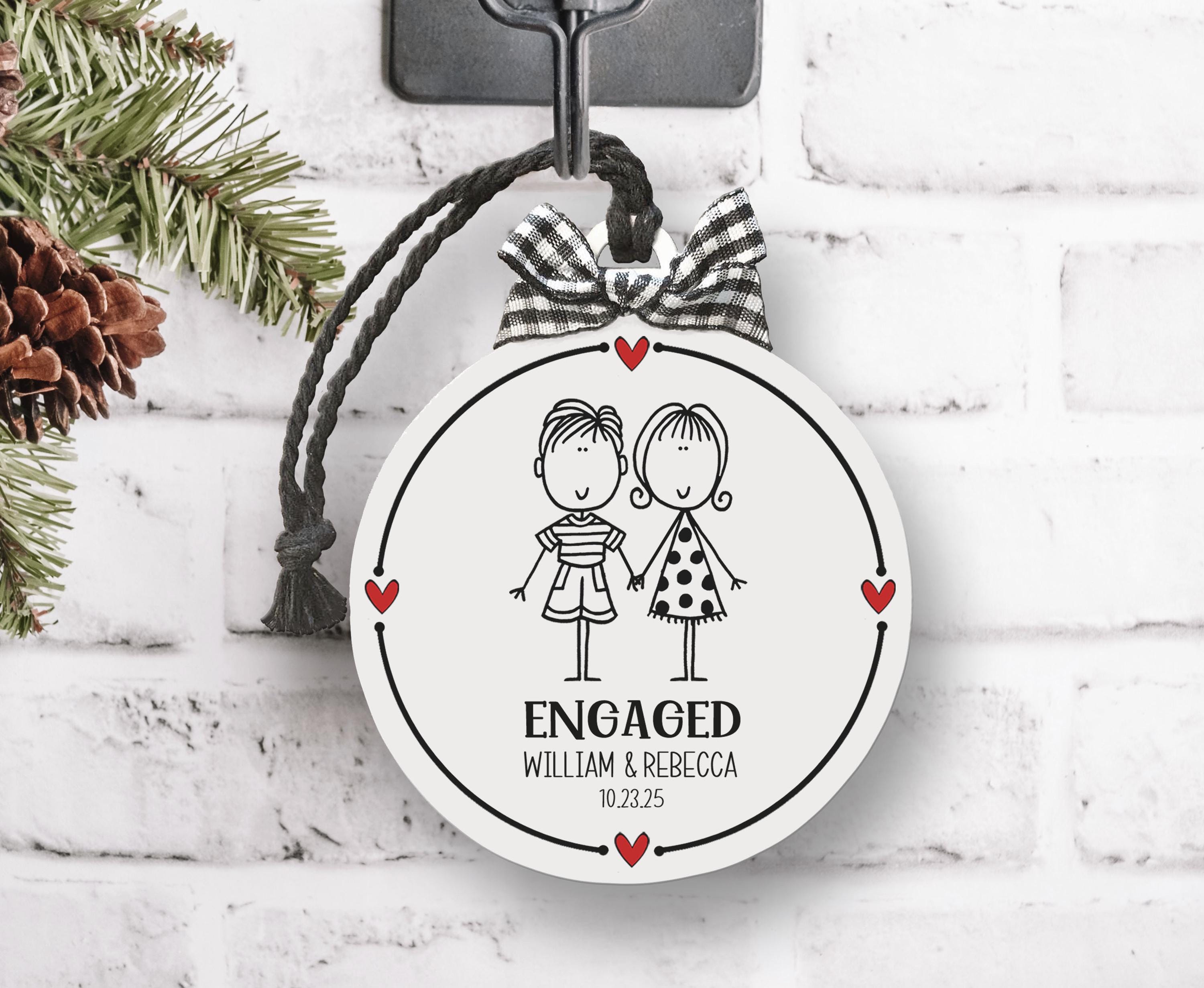Looking for the perfect engagement gift? This hand-drawn ornament is a sweet gift for an engaged couple, bridal shower, or first Christmas engaged. Personalized just for them with names and date, it’s a lasting keepsake that captures the joy of their engagement season.