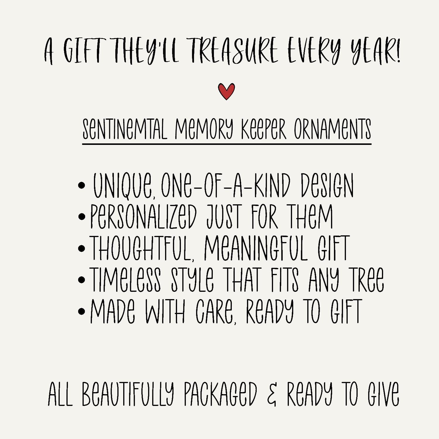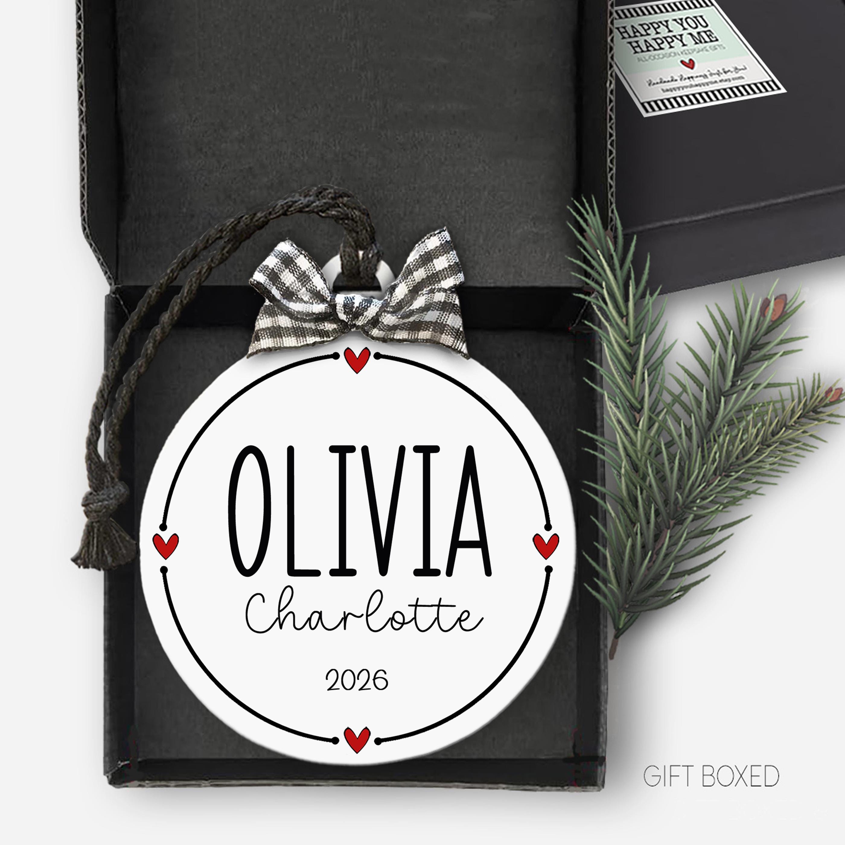 Looking for a meaningful and unique keepsake gift to celebrate Baby's 1st Christmas? These delightful personalized baby name ornaments are the stand-out gift you're searching for! Individually handmade, each 3" round, flat keepsake ornament is customized with name and date, and makes a delightfully unique and heart felt gift for those new parents! This personal, thoughtful, one-of-a-kind keepsake gift perfectly celebrates their little bundle of joy!