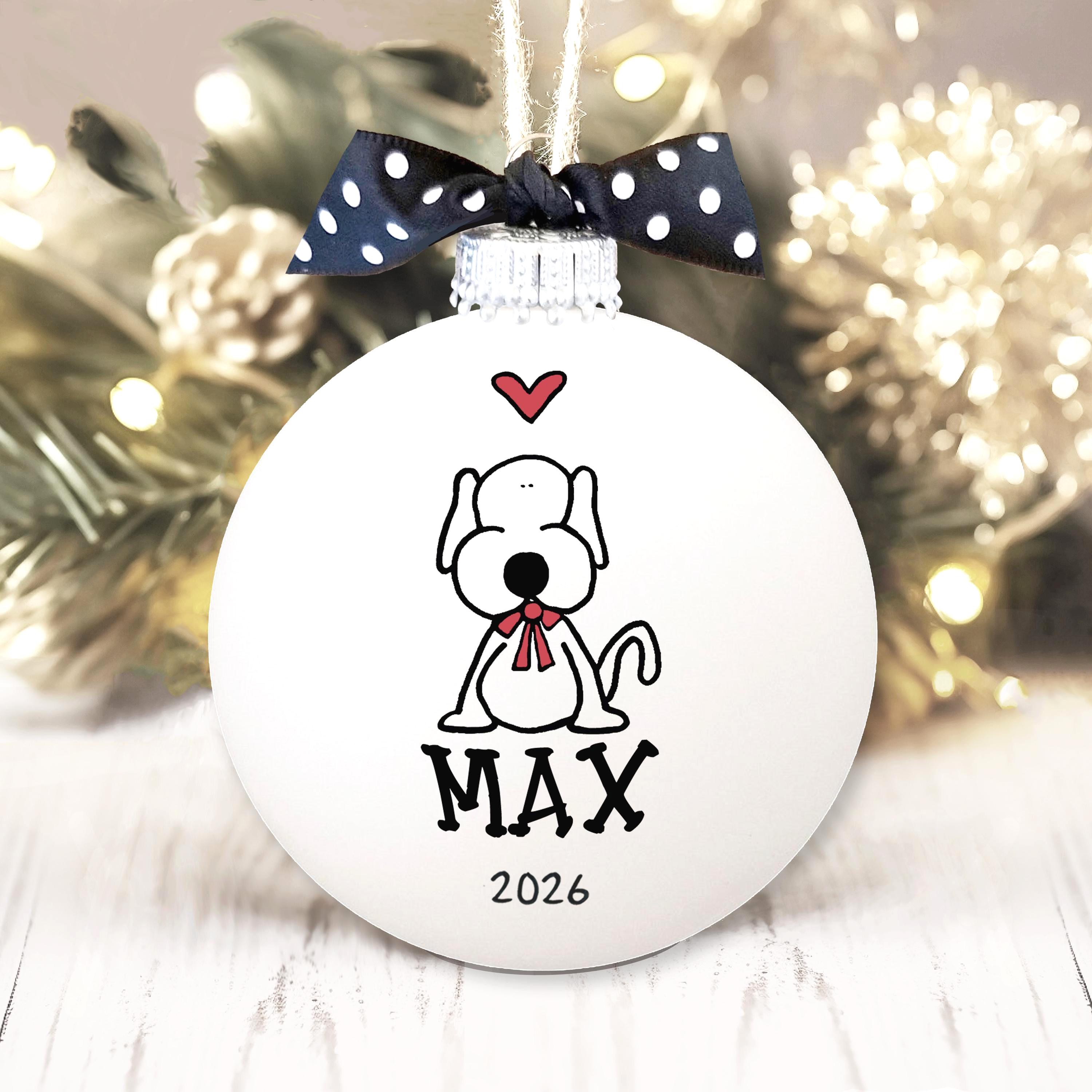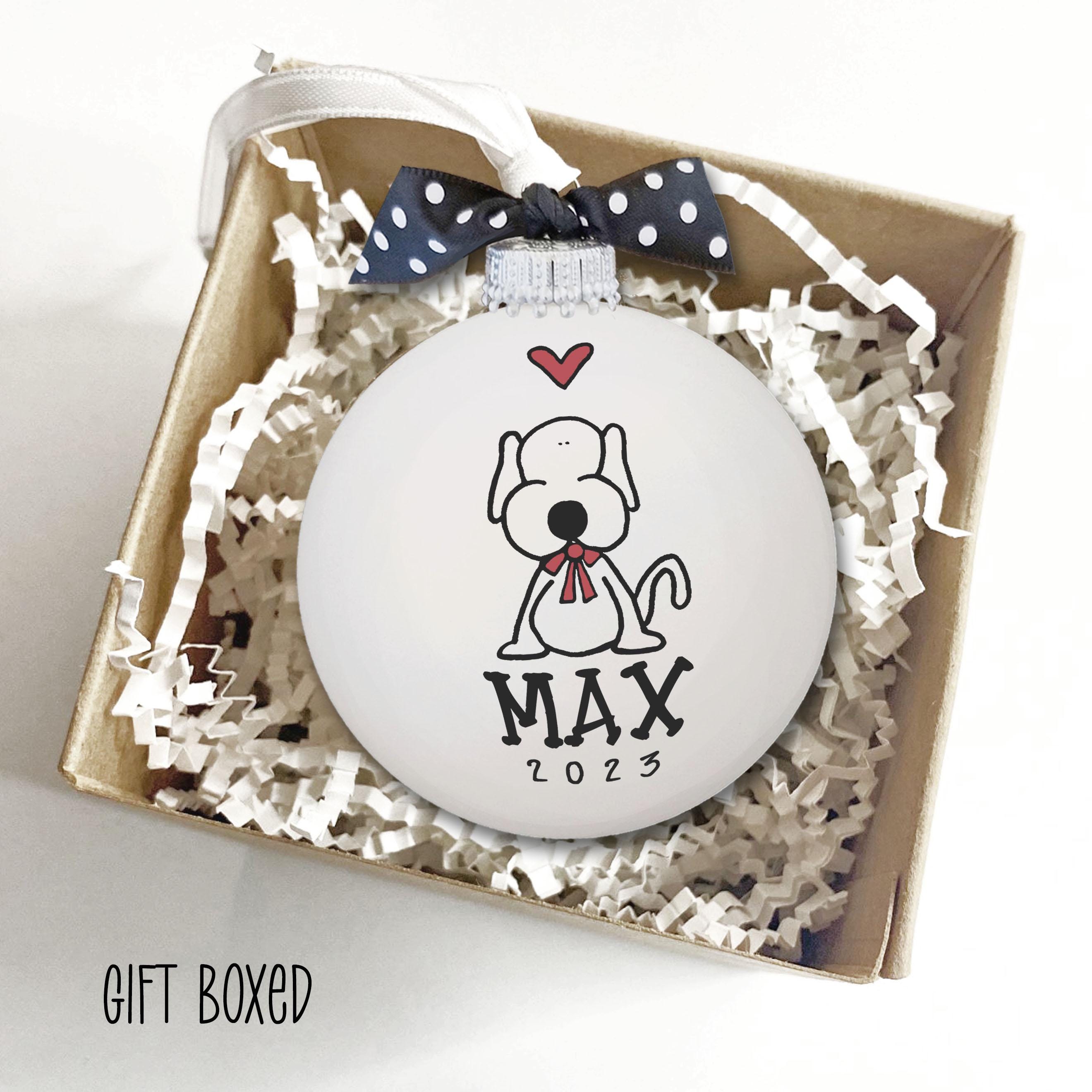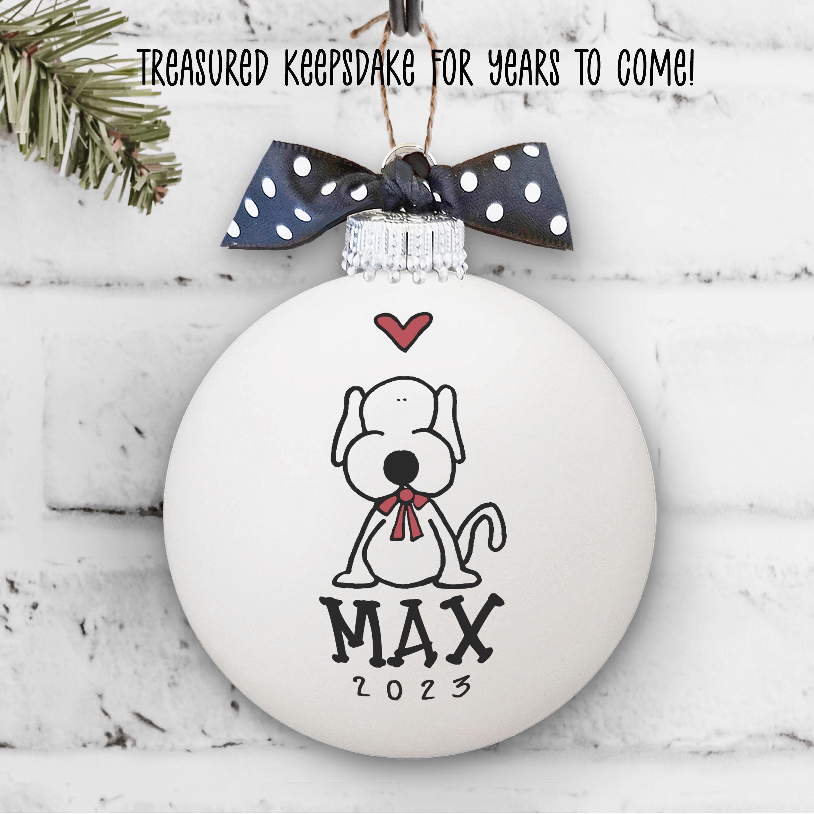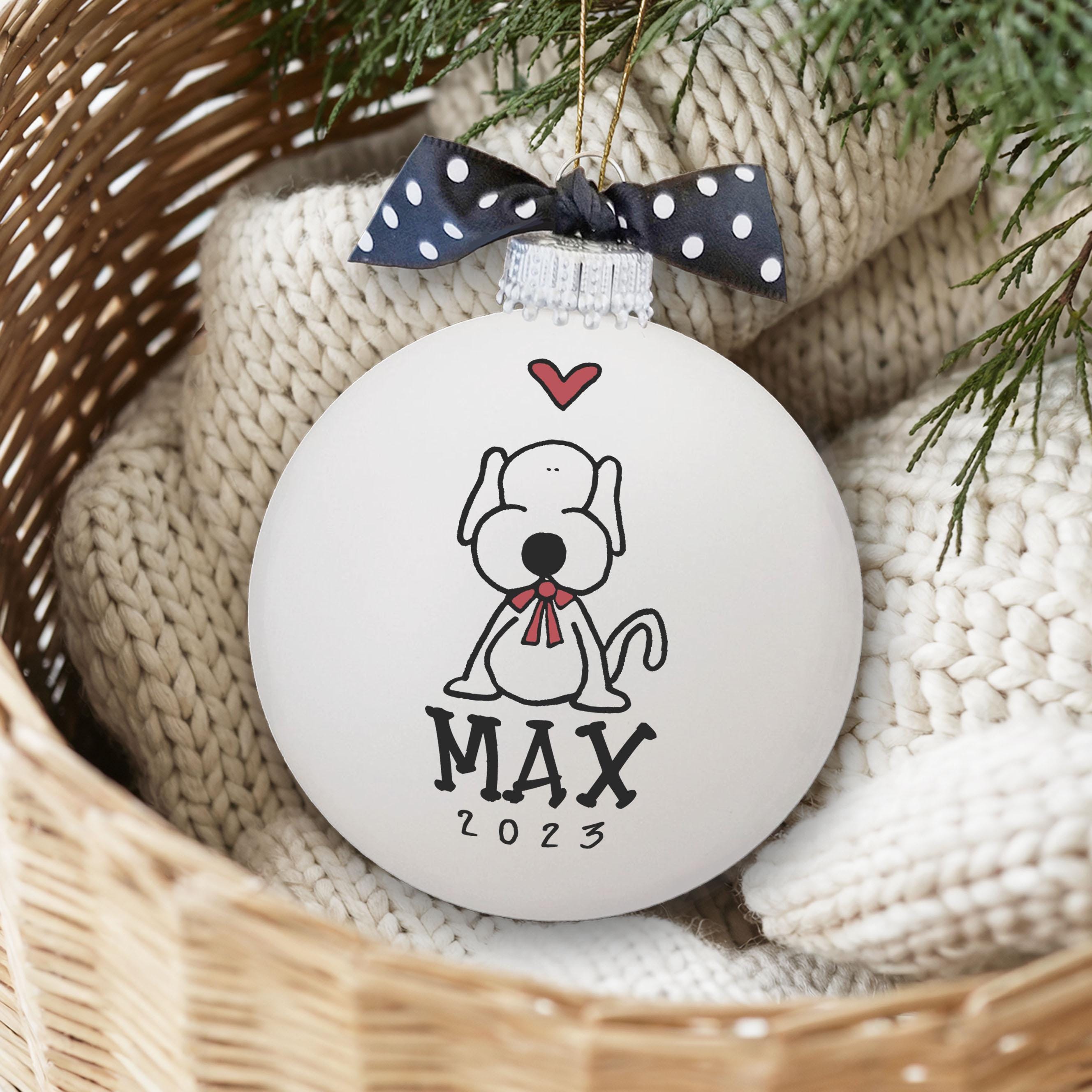 A sweet puppy keepsake to celebrate the year your new best friend joined the family. Personalize this new pet ornament with your name(s) and year, then hang it up and smile every time you see it. Hand painted glass bulb.