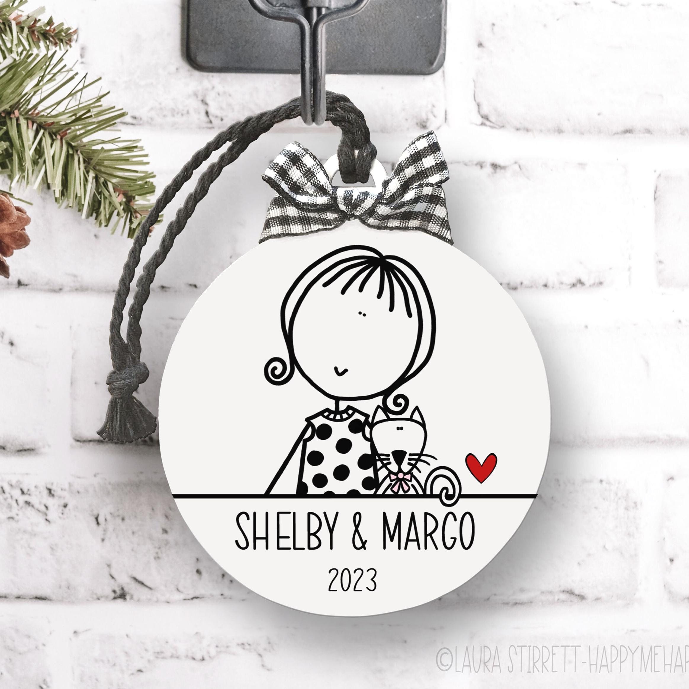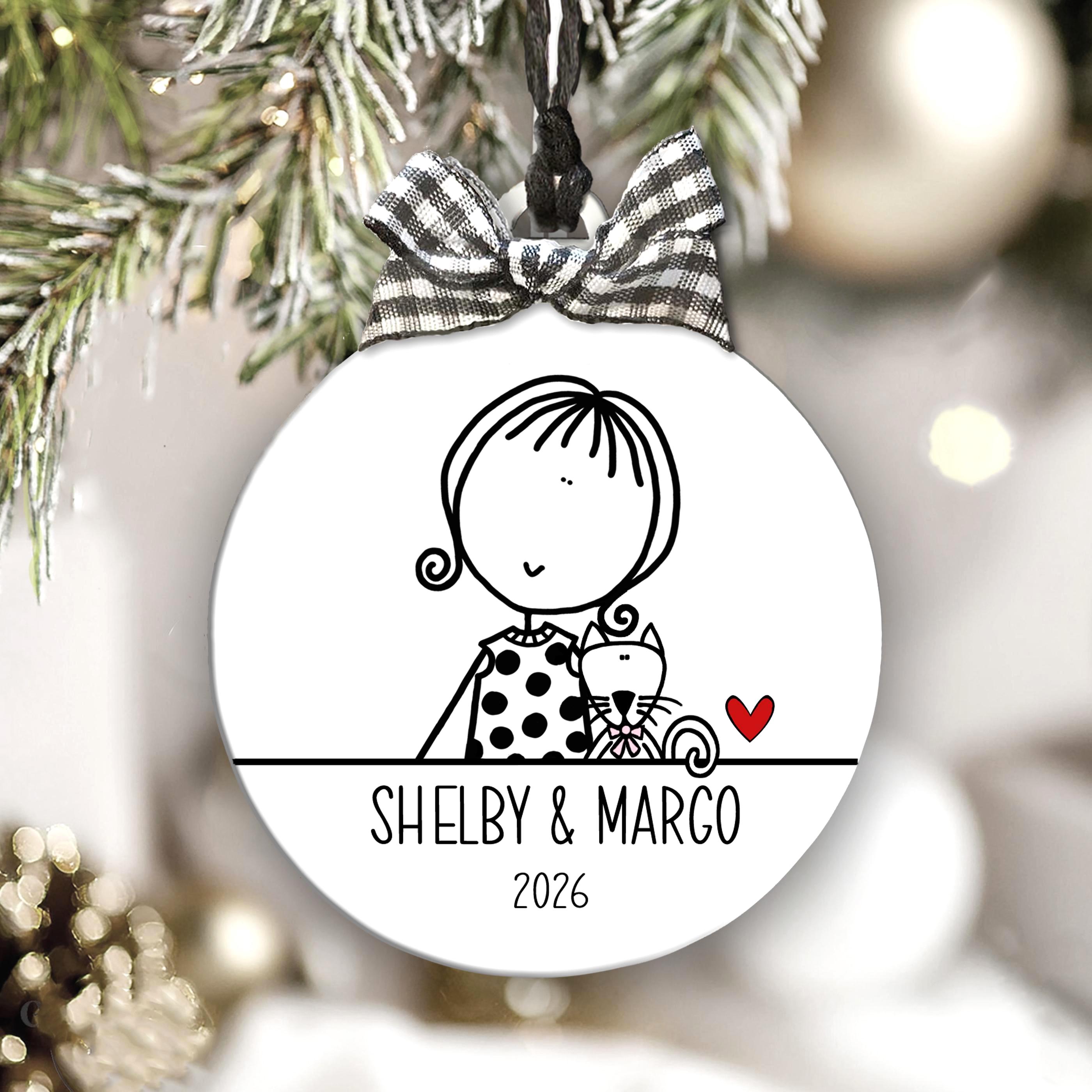 A sweet pet lover gift that turns your furry best friend into a keepsake you can hang front and center every holiday. This personalized ornament features a clean, modern illustration and your custom names and year, finished with a classic black-and-white gingham bow for cozy charm. It’s the perfect cat mom ornament for celebrating everyday snuggles, first Christmas memories, and tail-wagging joy.