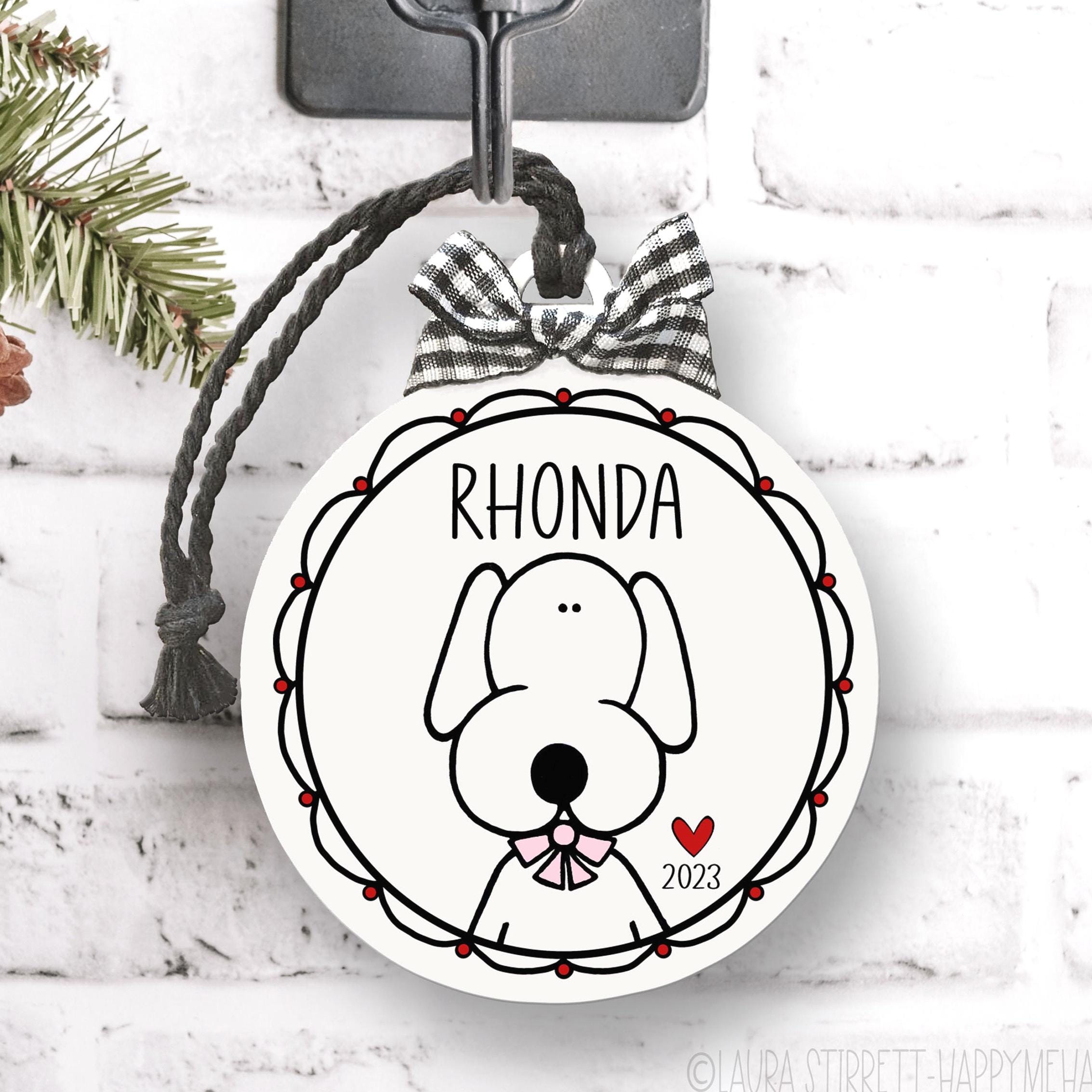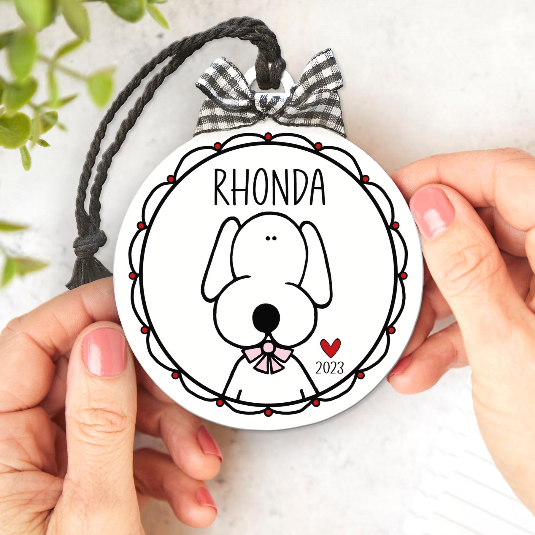A sweet pet lover gift that turns your furry best friend into a keepsake you can hang front and center every holiday. This personalized ornament features a clean, modern illustration and your custom names and year, finished with a classic black-and-white gingham bow for cozy charm. It’s the perfect dog mom ornament for celebrating everyday snuggles, first Christmas memories, and tail-wagging joy.