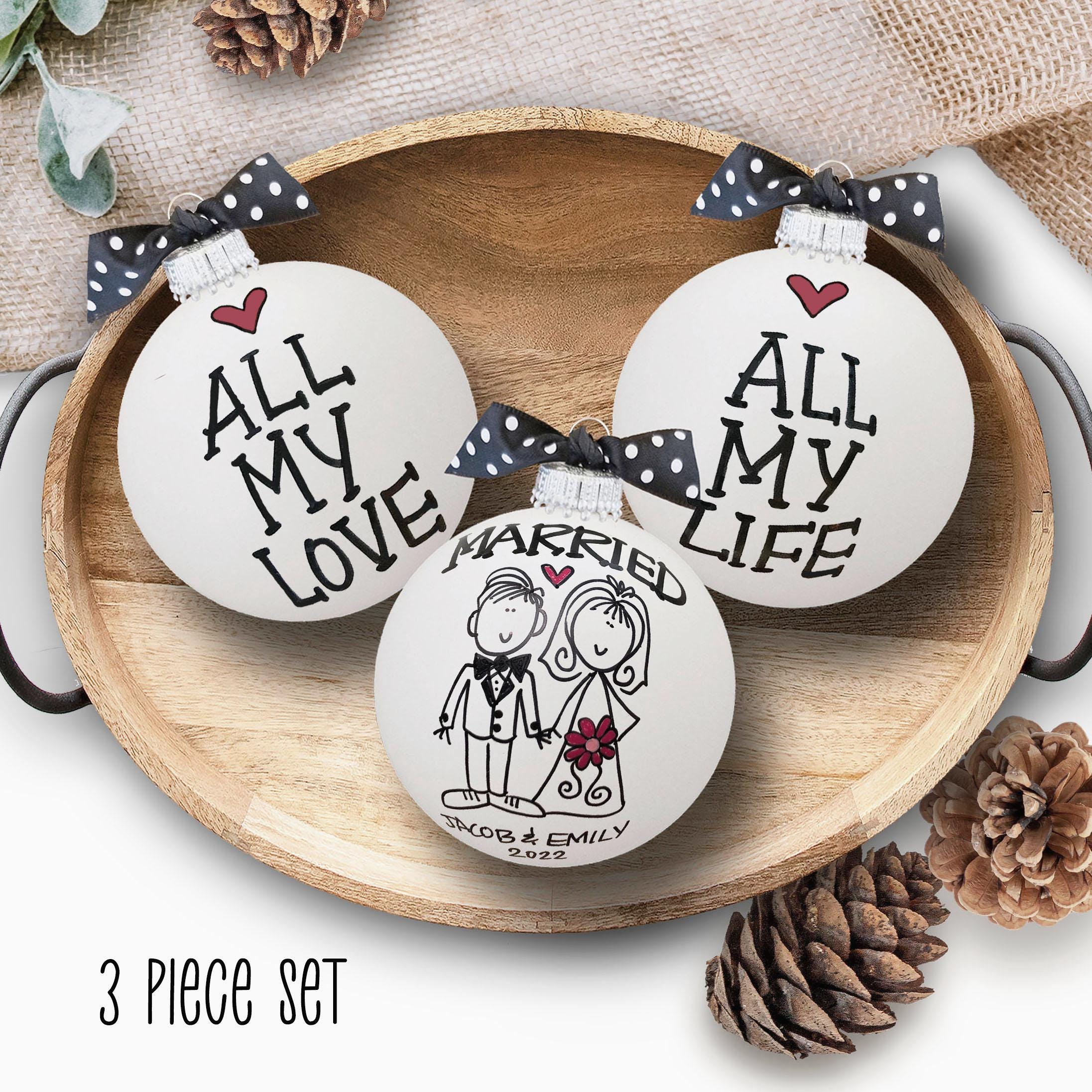 Celebrate a love that lasts a lifetime with a personalized wedding gift that captures “all my love, all my life.” This handpainted ornament set featuring romantic phrases and custom names creates a meaningful keepsake perfect for weddings, bridal showers, and newlywed couples.