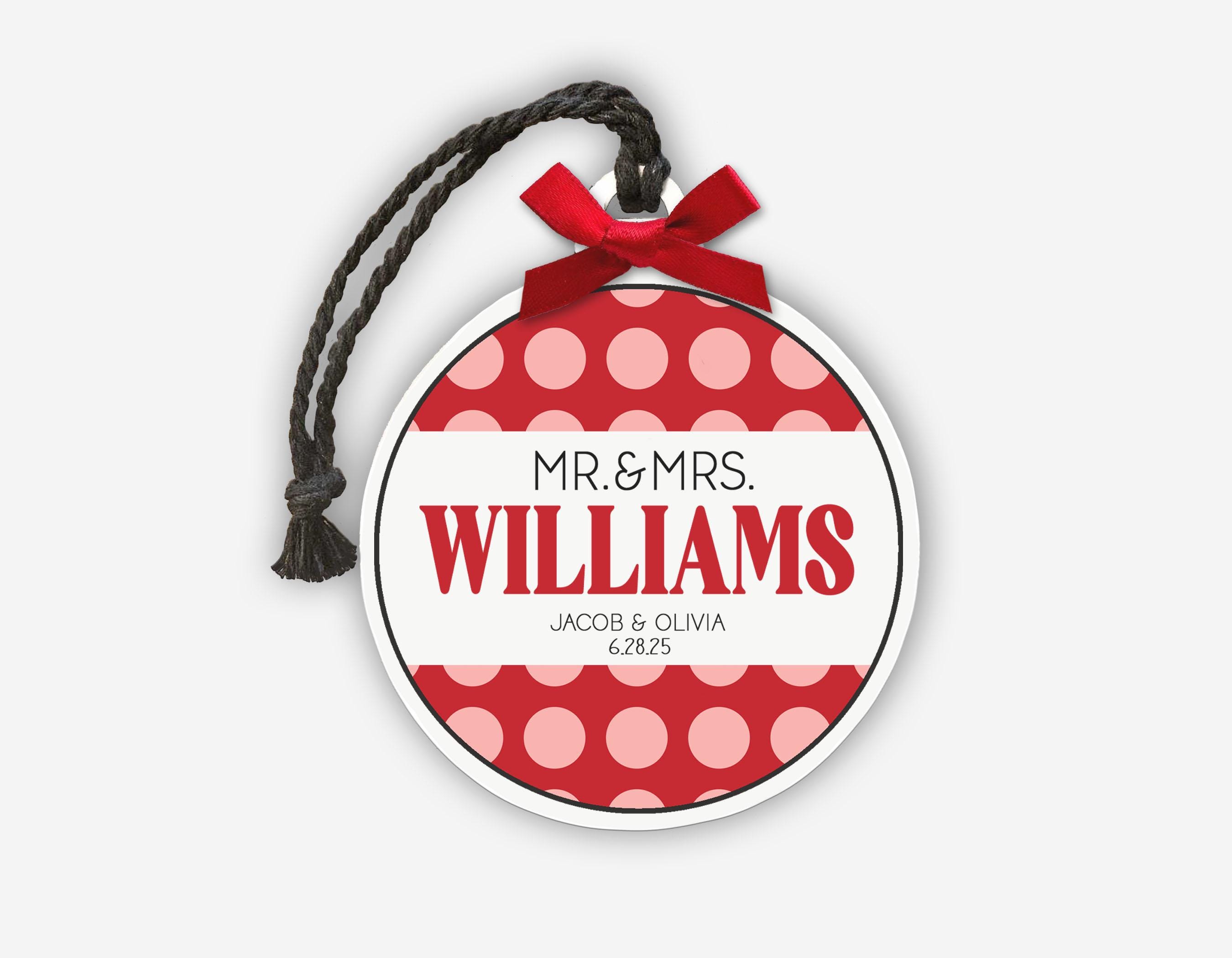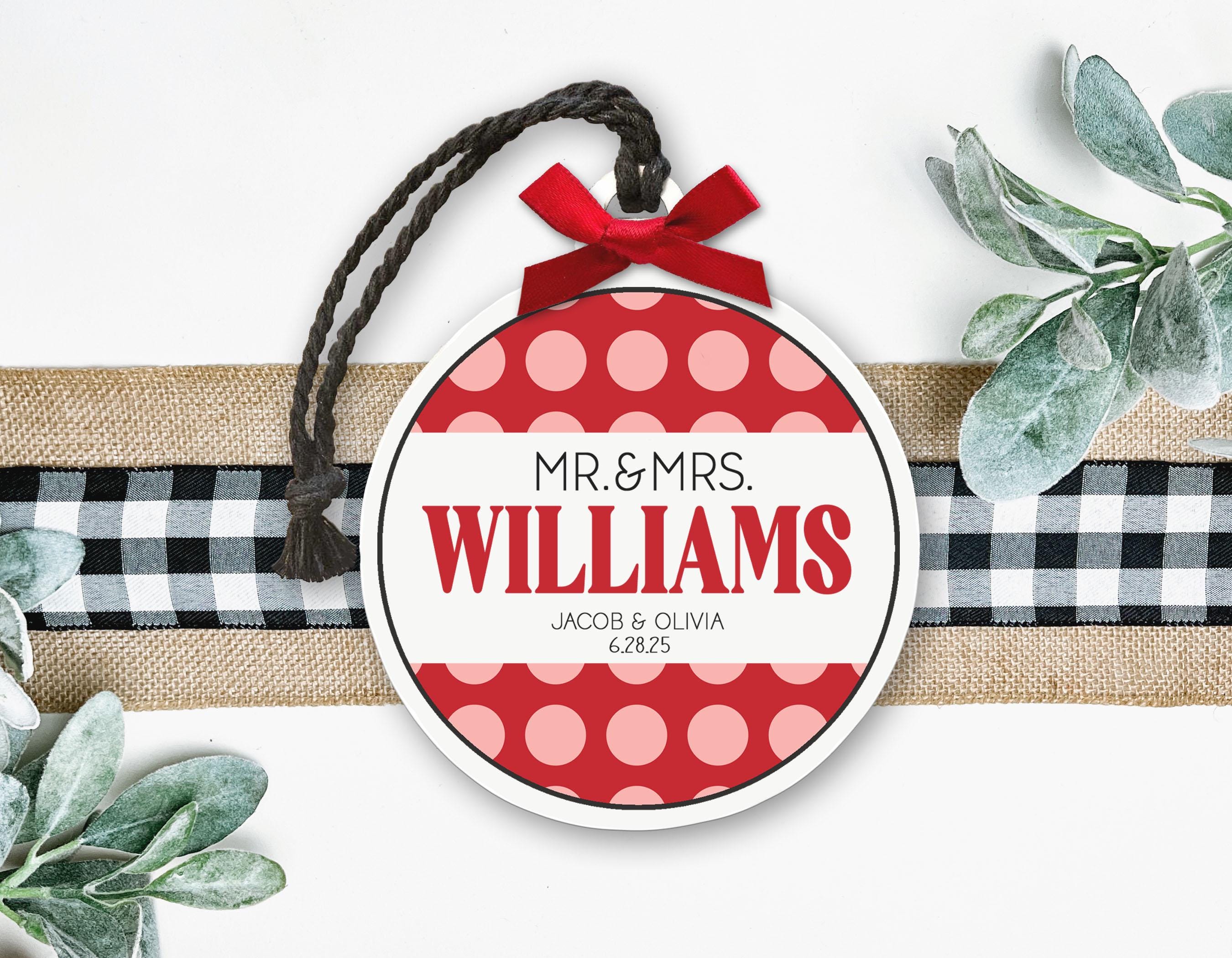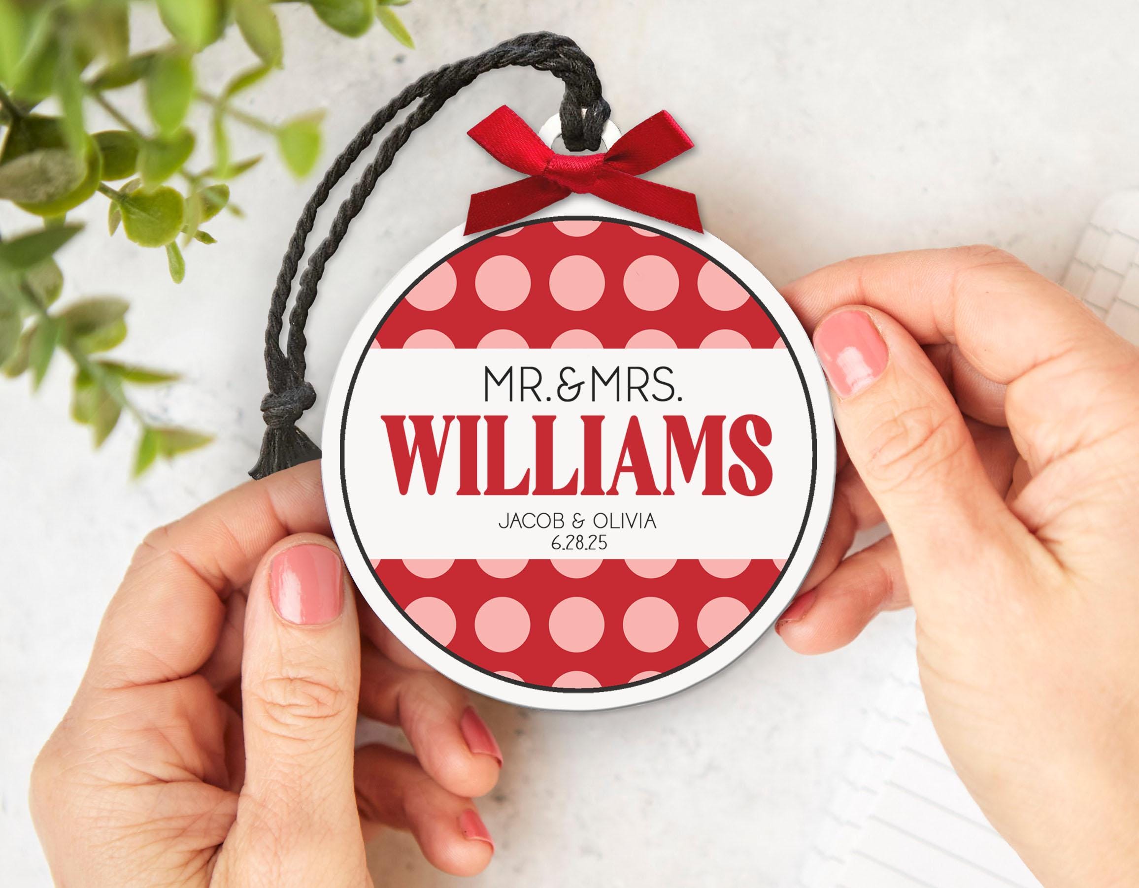 Mr & Mrs Christmas Ornament - First Christmas Together Keepsake: A wedding ornament that’s both meaningful and merry? Yes, please! This personalized keepsake celebrates the couple’s big moment — whether it’s a wedding, an engagement, or their first holiday season as newlyweds. The joyful colors and timeless design pair perfectly with any Christmas decor, while the custom name and date make it a memory they'll cherish for years.