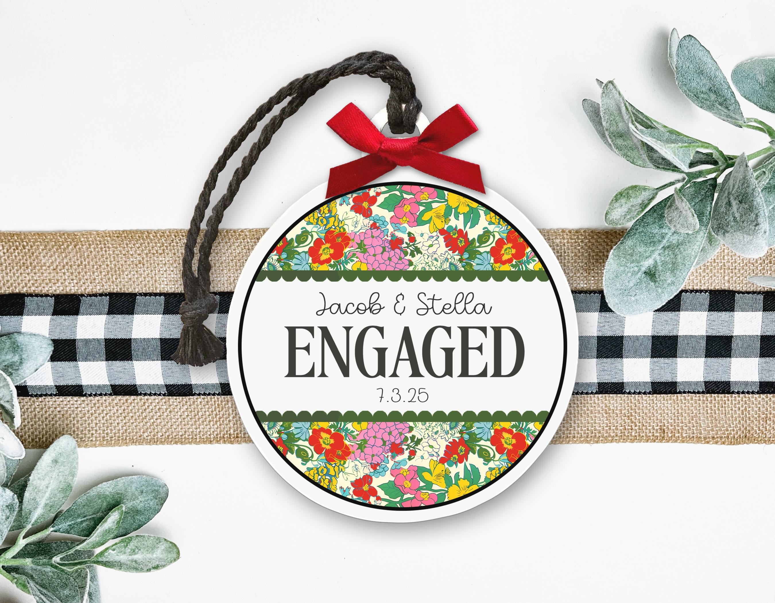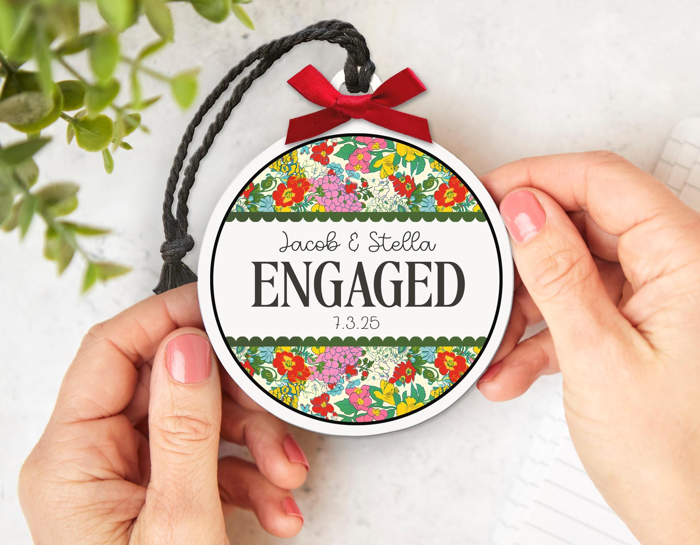 Personalized Christmas Ornament for Engaged Couples - Unique Floral Design: