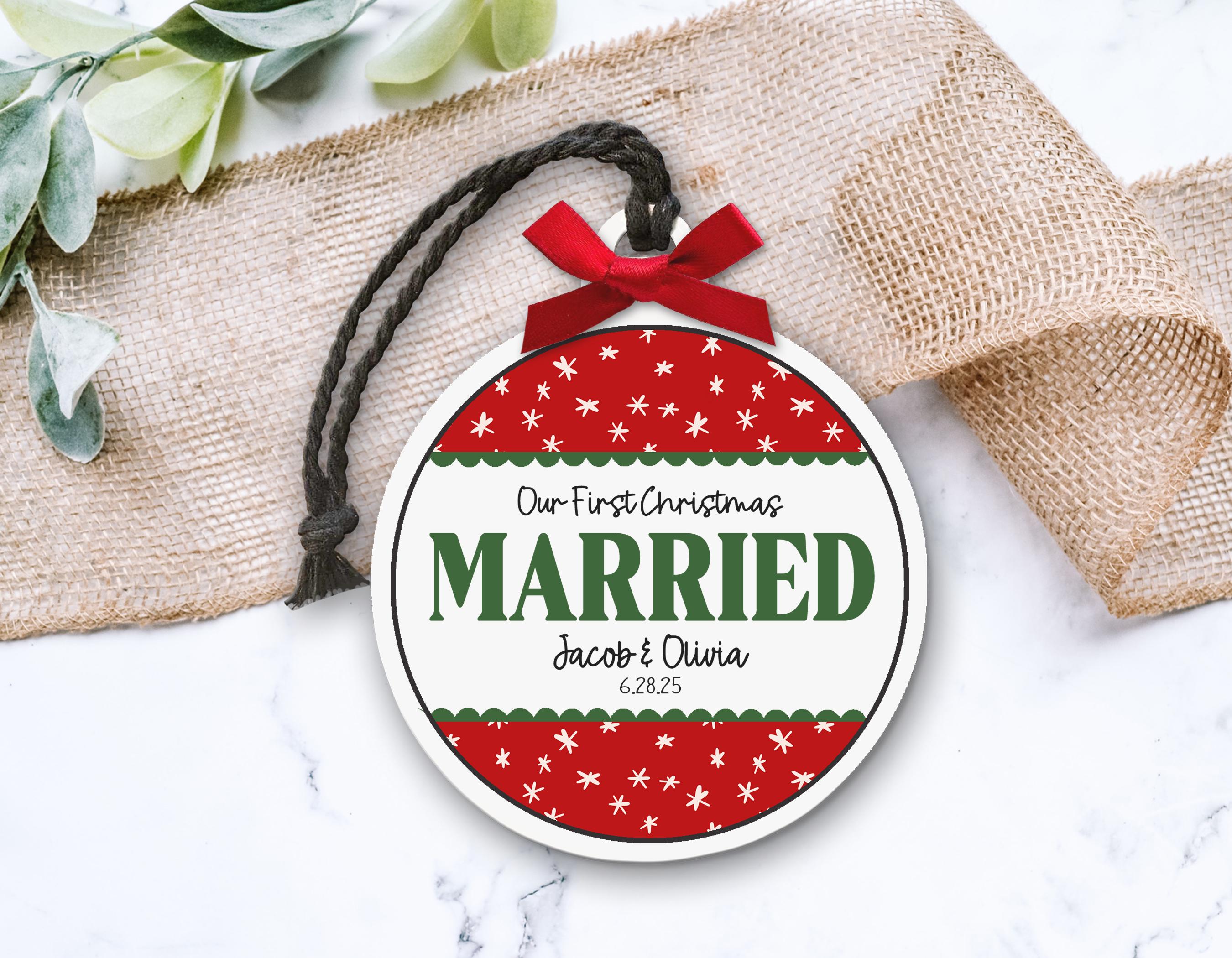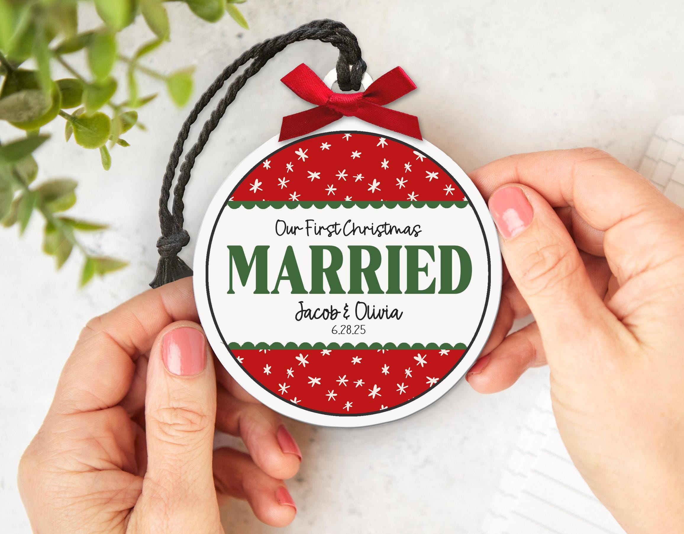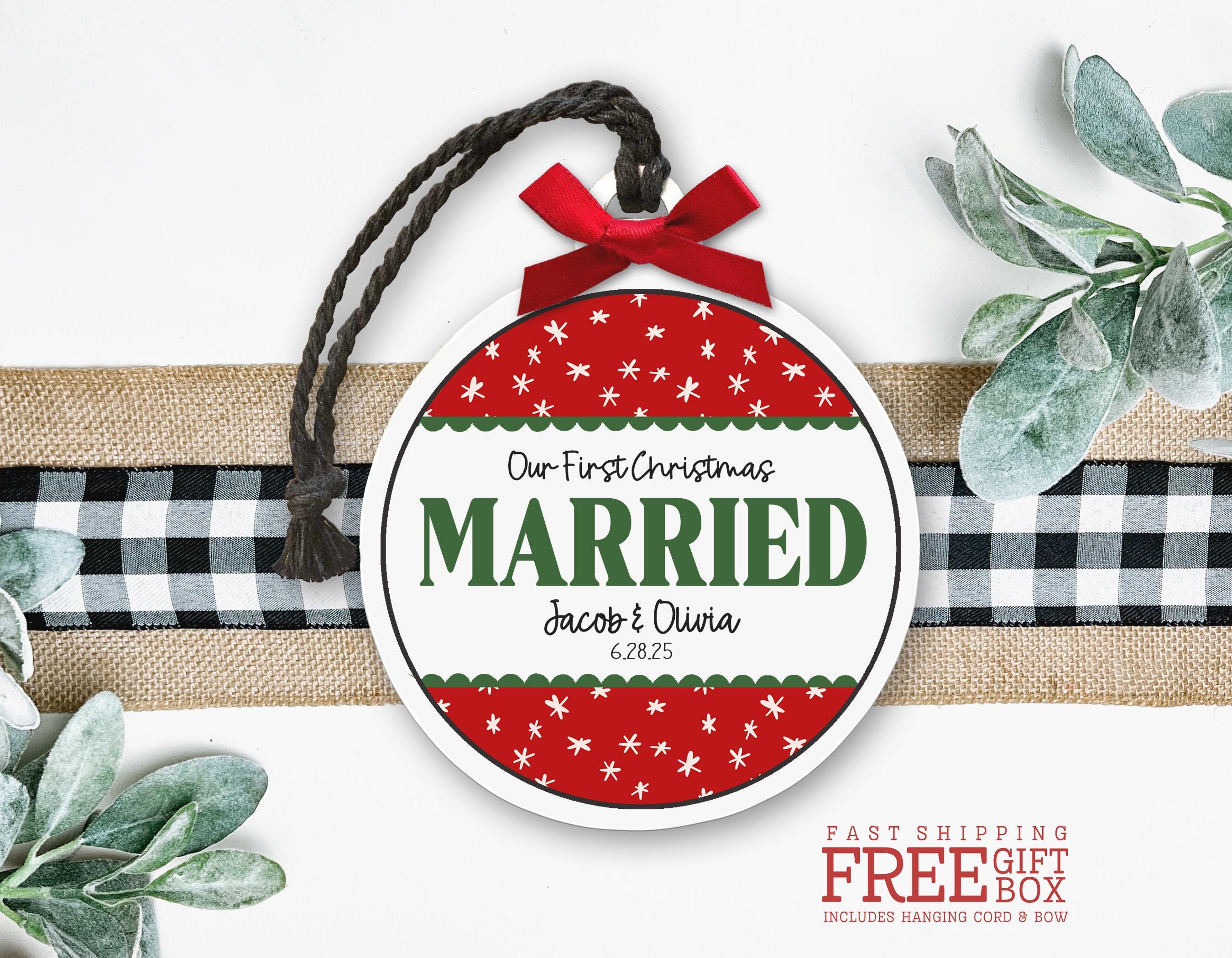 Personalized First Christmas Together Ornament - Couples Ornament - Newlyweds First Christmas Together - New Couple Gift 2025 : Celebrate their first Christmas married with a cheerful red and green ornament that’s as festive as their love! Featuring their personalized names and wedding date, this personalized keepsake is perfect for gifting or commemorating their special day during the holidays. Delightful keepsake gift!