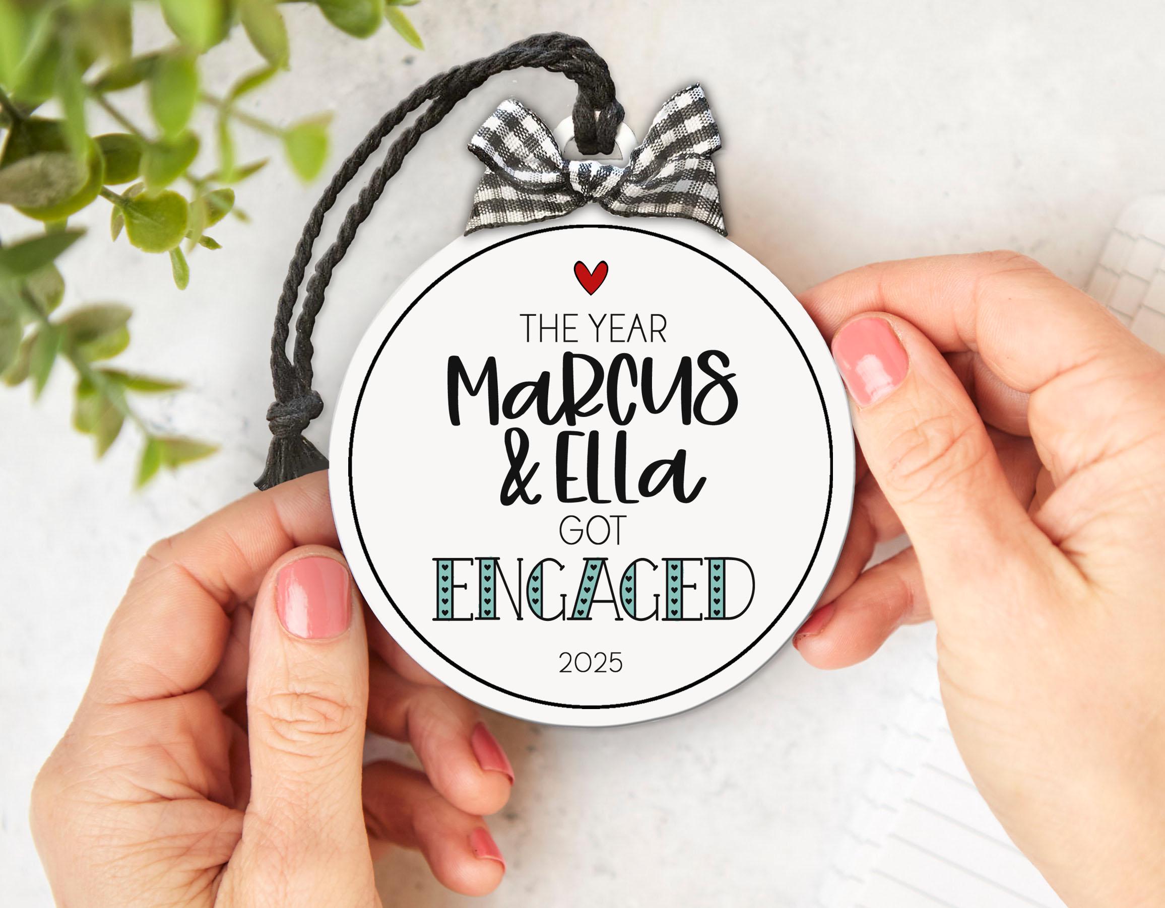 Christmas Ornament for Engaged Couples - Personalized Engagement Gift - Handmade Engagement Keepsake: Celebrate your first Christmas engaged with a custom ornament that captures this unforgettable milestone! Featuring the couple's names, engagement date, and a fun & fabulous design, this keepsake makes a heartfelt gift or a sweet holiday surprise for your fiancé.