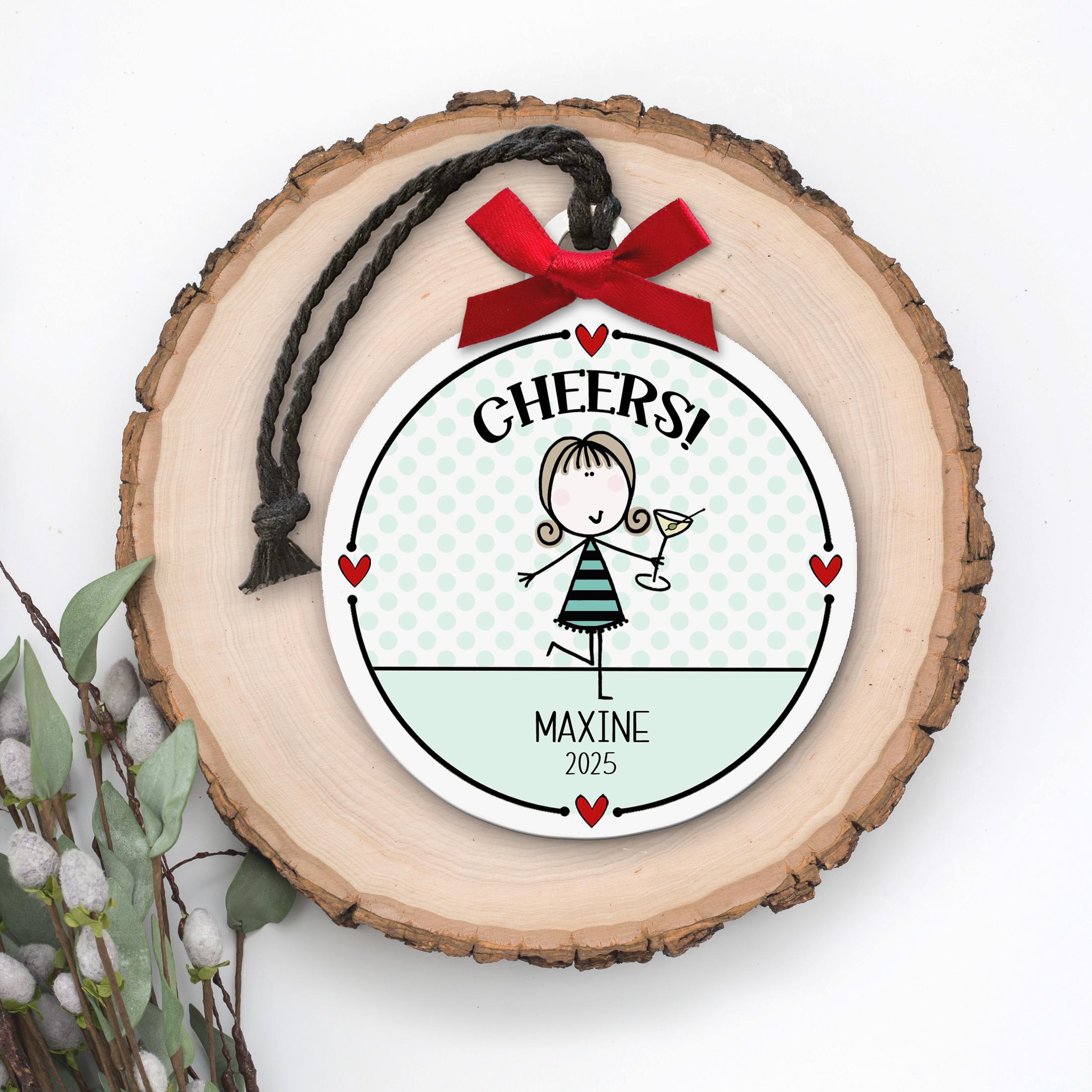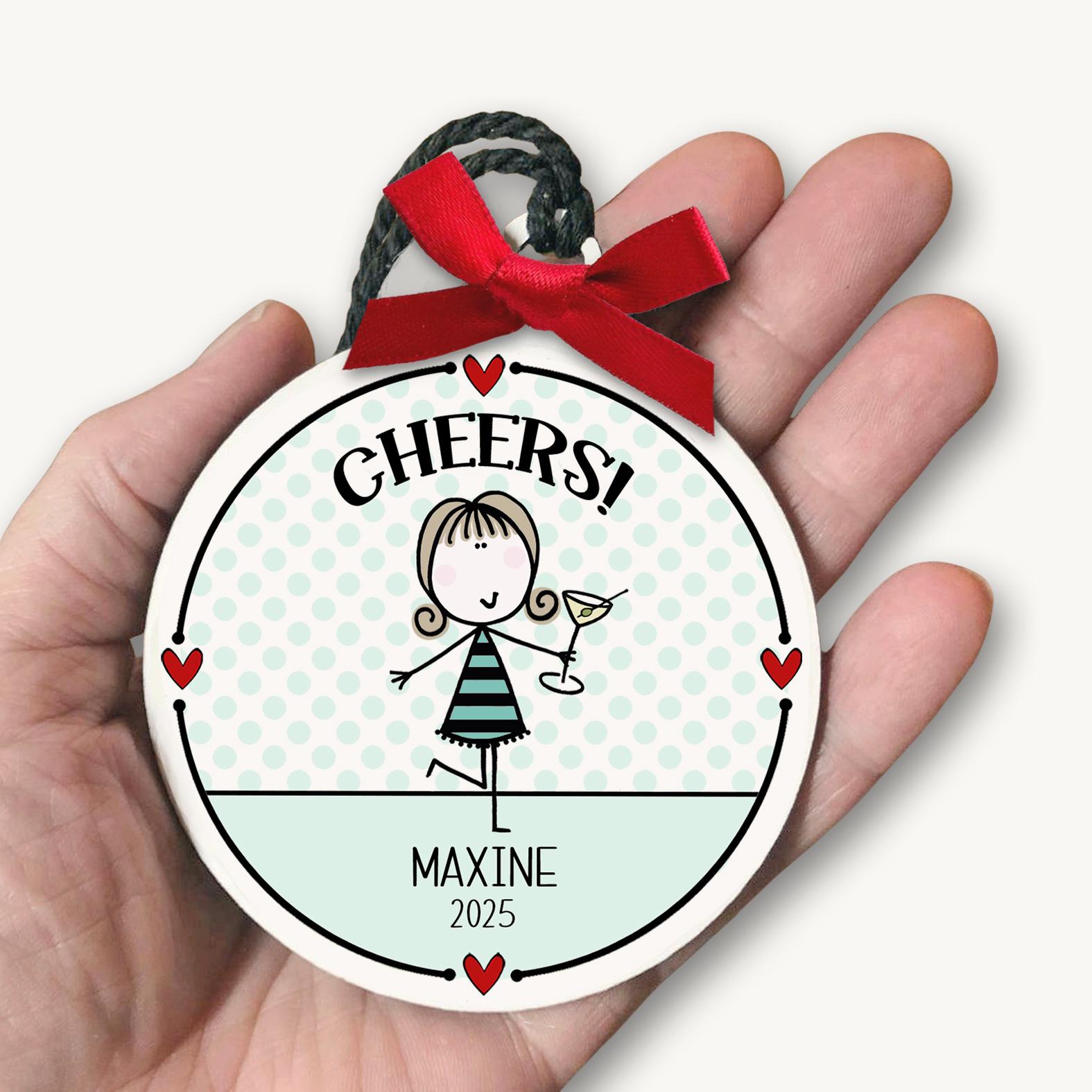 Celebrate friendship, fun, and festive cheer with this adorable “Cheers!” ornament! A playful, personalized gift for your bestie, sister, coworker, or girls’ night crew. Whether it’s for Christmas, a milestone celebration, or just because, this keepsake brings joy and sass to any tree.