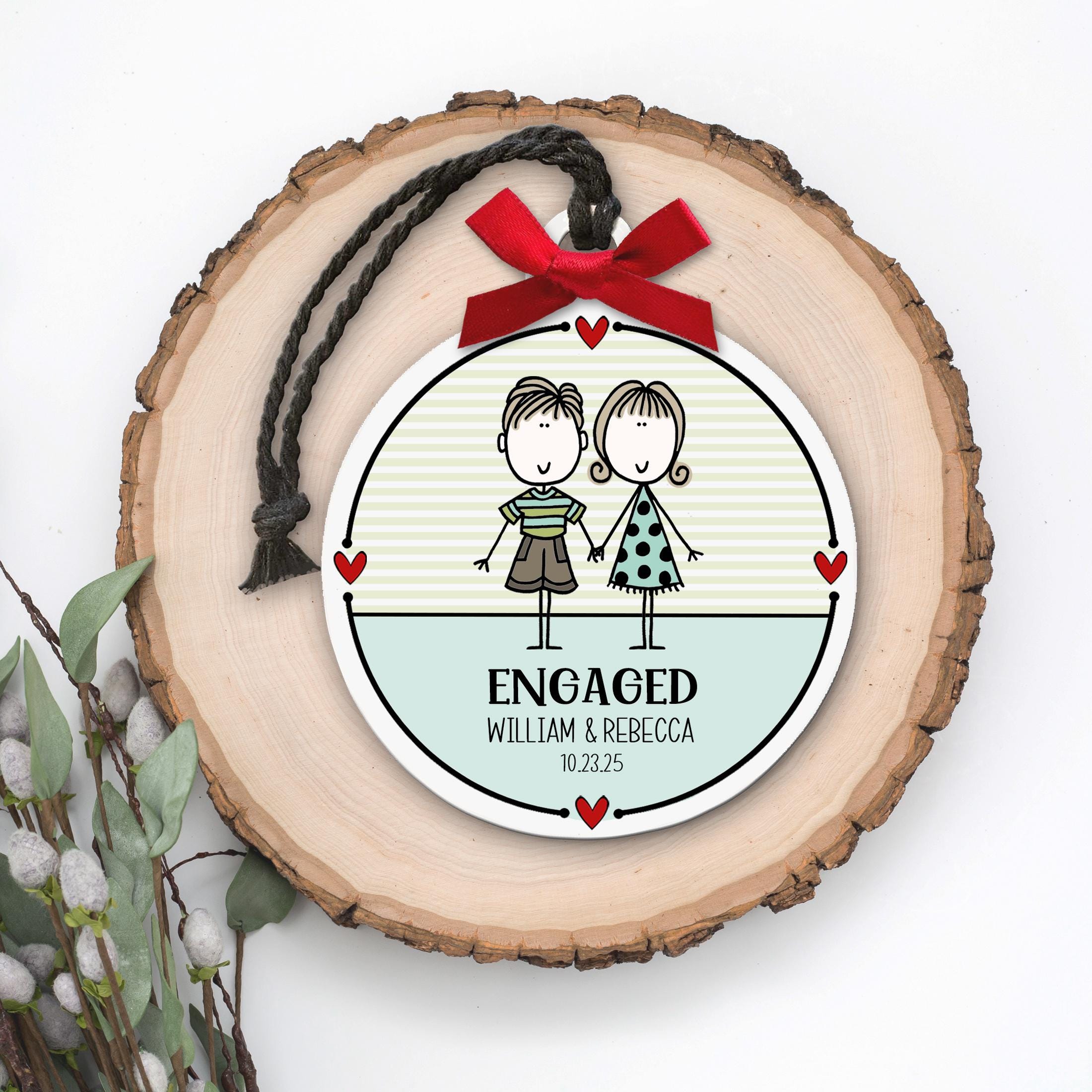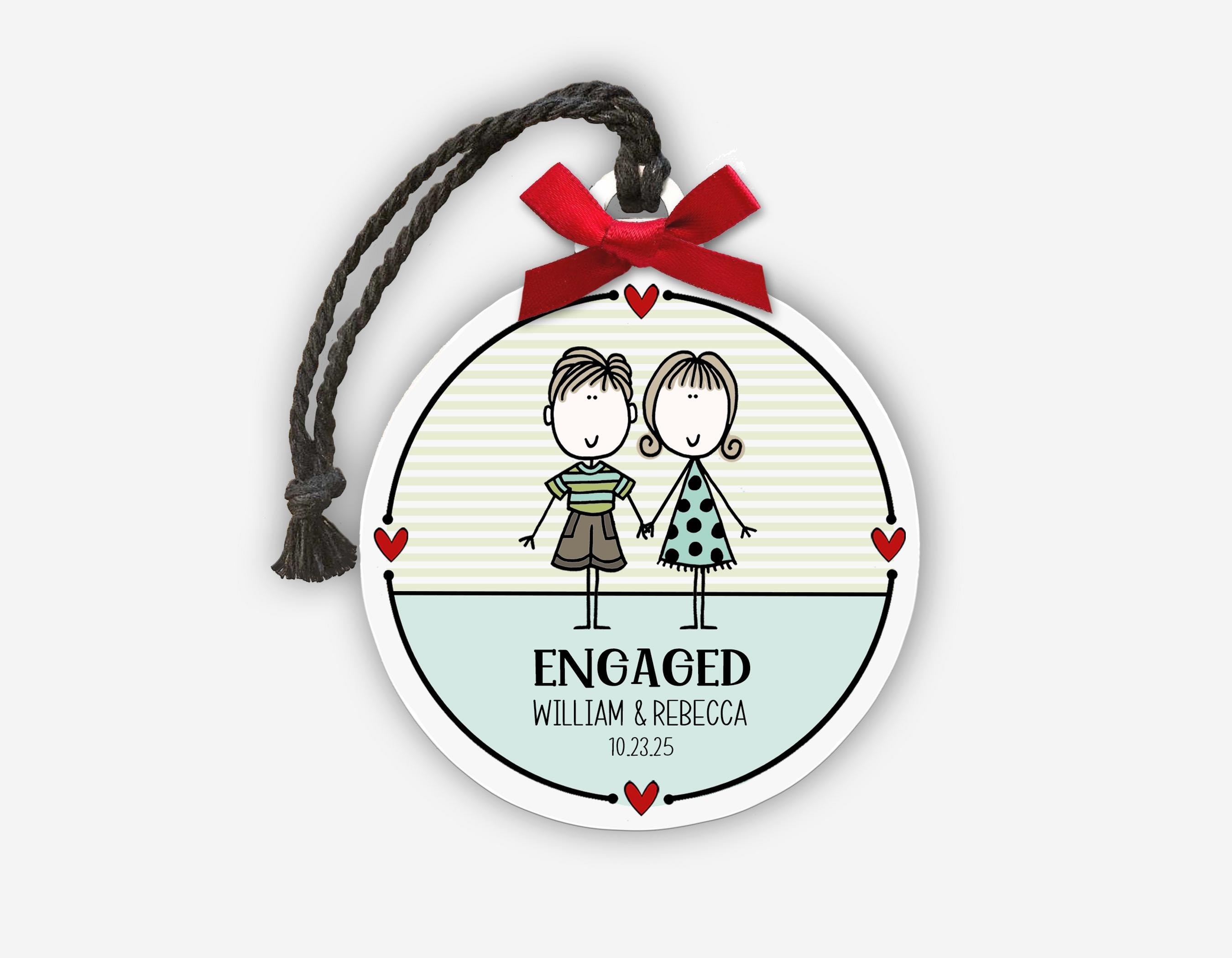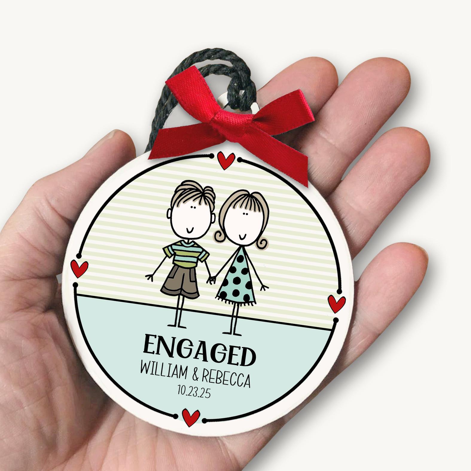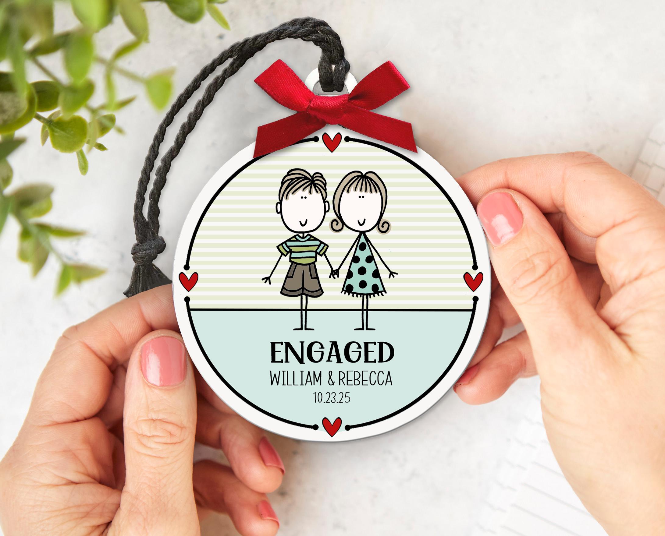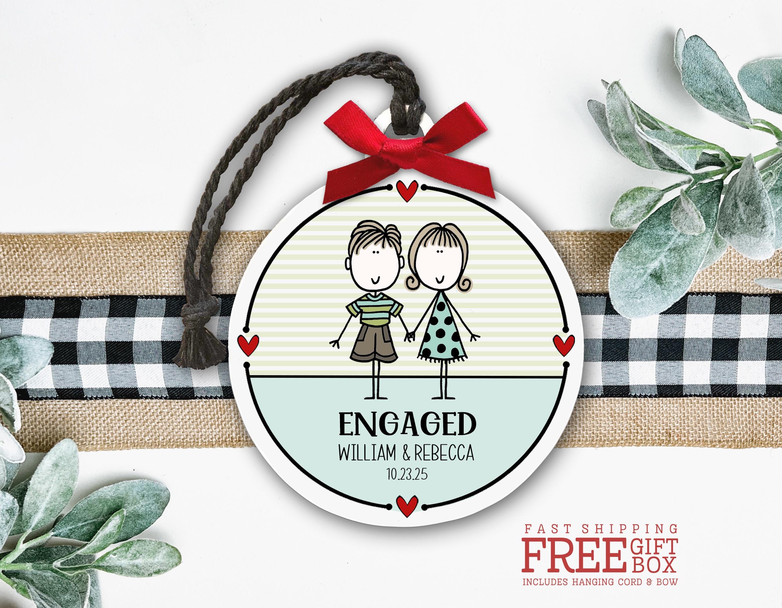 Engaged Couple Ornament - Personalized Engagement Gift for Couple: Celebrate a brand-new "YES!" with this adorable custom ornament featuring your favorite engaged couple! A sweet keepsake for their first Christmas as fiancés — personalized with their names and engagement date to mark the moment in style. A thoughtful gift for a newly engaged daughter, son, best friend, or newly announced couple!