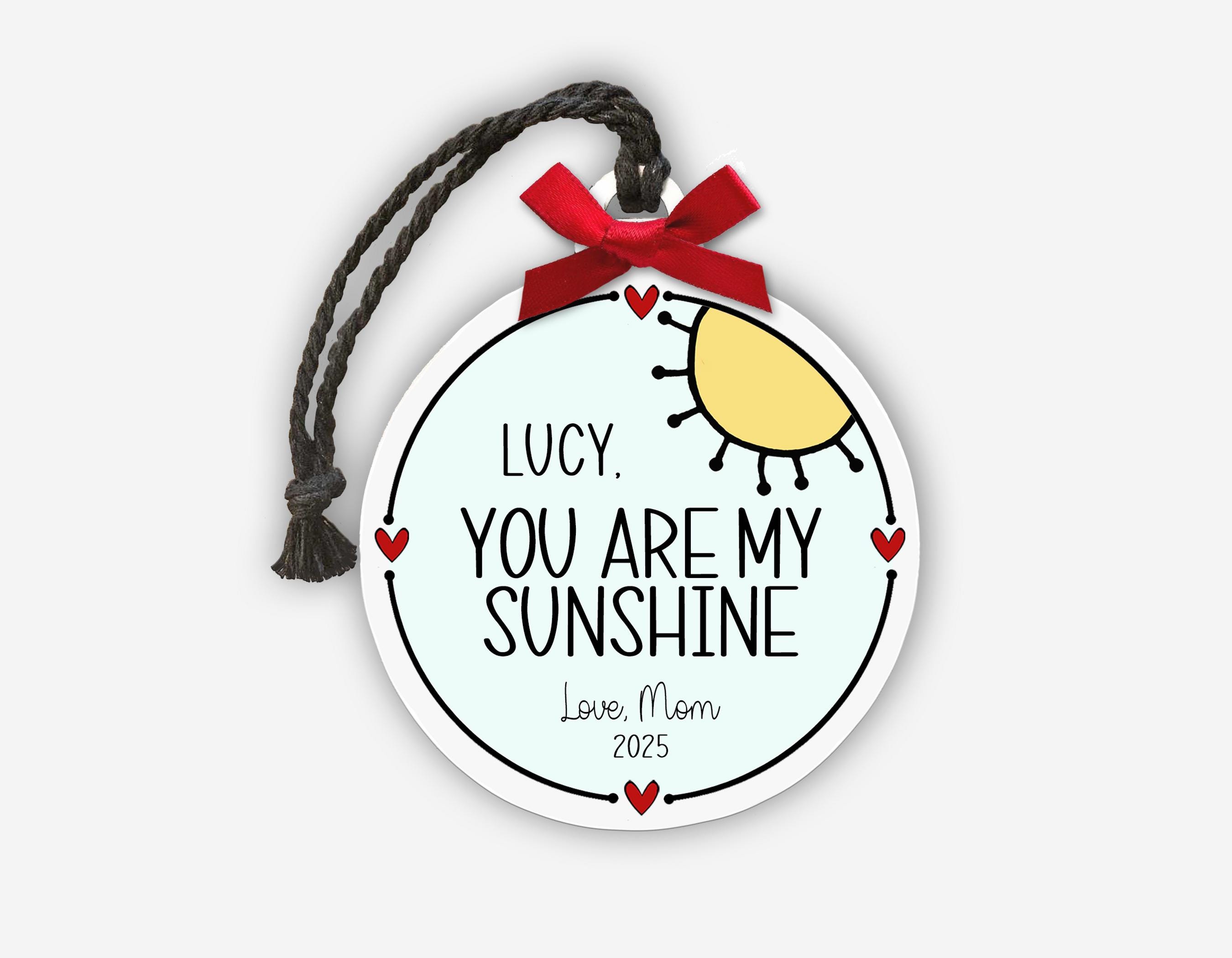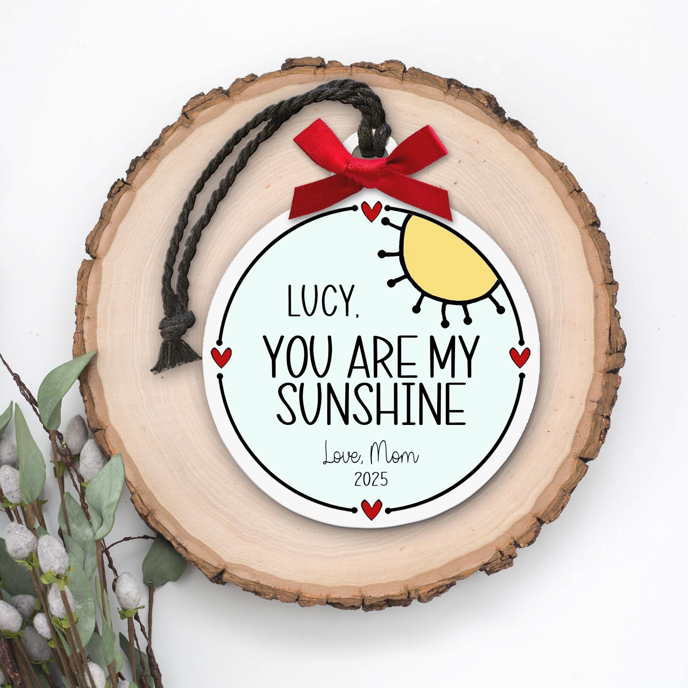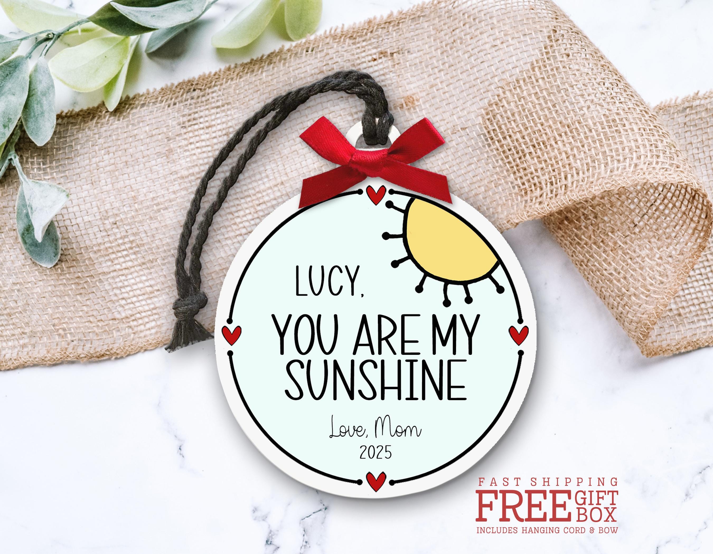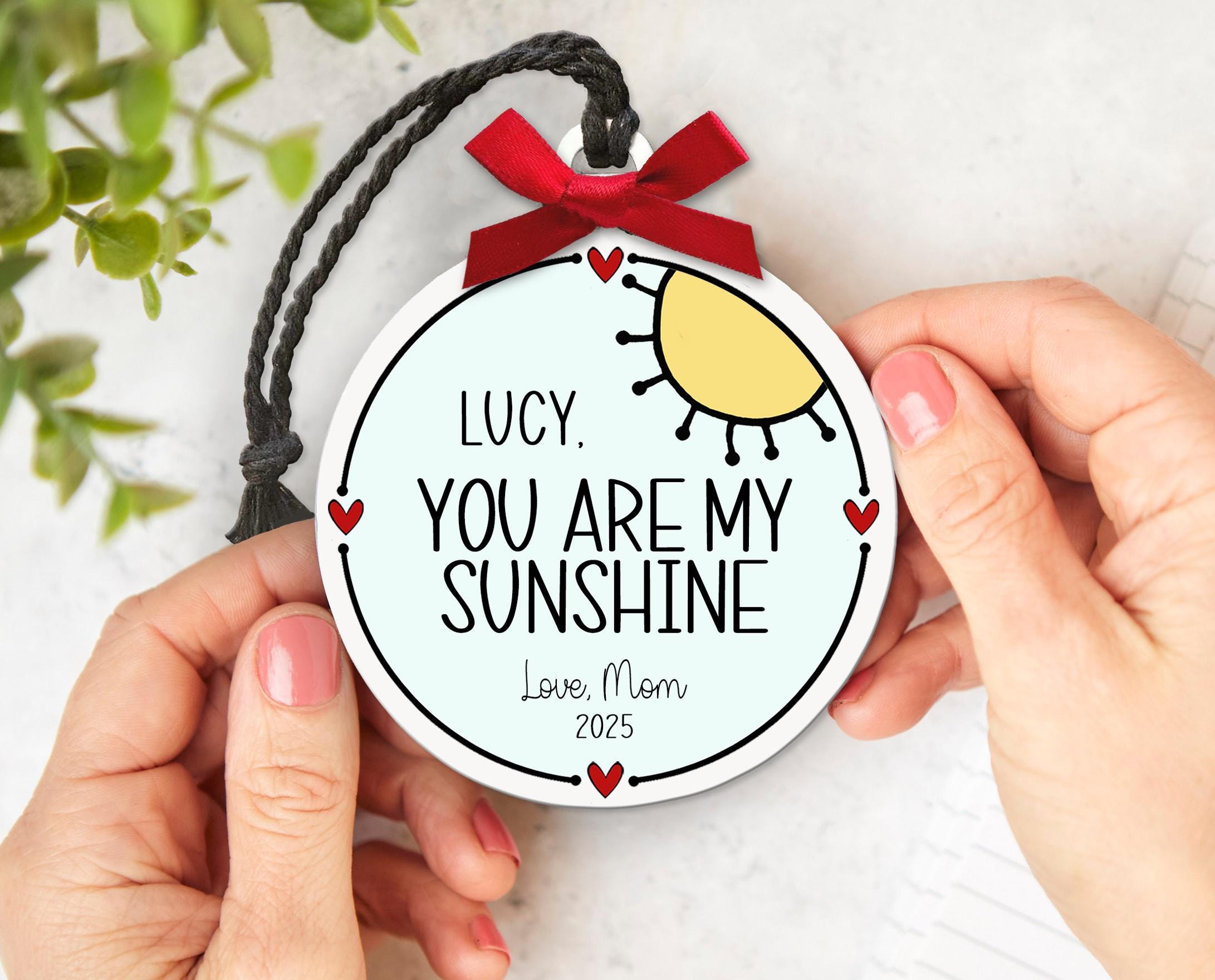 You Are My Sunshine Personalized Ornament: Celebrate the sunshine in your life with this sweet, personalized ornament. Whether you're a mom, dad, grandparent, or partner, this cheerful keepsake is a joyful way to say, "You are my sunshine." The hand-drawn sun, playful font, and loving message make it a meaningful gift they'll treasure year after year.